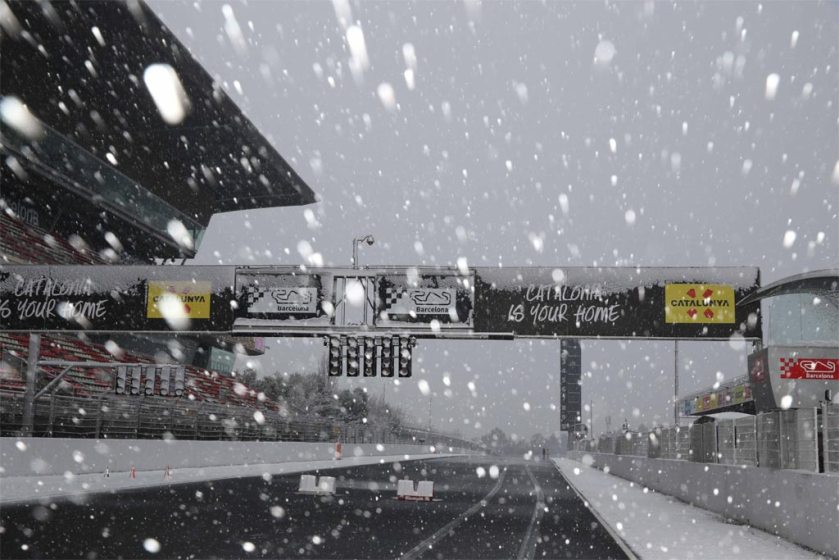 La nieve altera la pretemporada en el Circuit de Barcelona-Catalunya pero estimula el ingenio de escuderías y pilotos