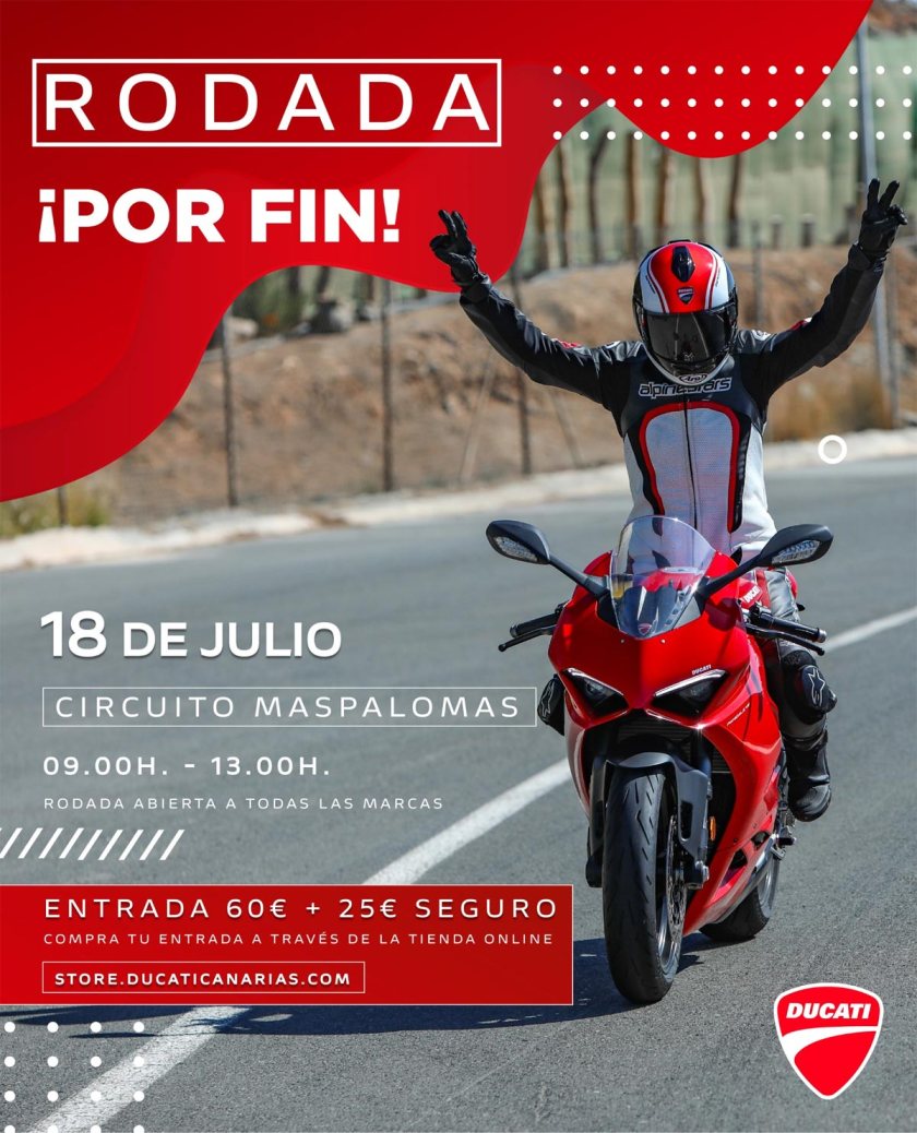El próximo 18 de julio Ducati Canarias celebrará su tradicional rodada cumpliendo con todas las nuevas medidas de seguridad Las entradas ya están disponibles en la store.ducaticanarias.com. Ducati Canarias vuelve a celebrar sus míticas rodadas garantizando seguridad ante el coronavirus y máxima libertad para volver a disfrutar de una de las aficiones preferidas por los canarios. La marca italiana invita a todos los motoristas, sin distinción de marcas, a unirse a esta nueva jornada donde la diversión está asegurada. Viajar en moto se ha vuelto una de las formas más seguras para frenar el contagio, por ello Ducati Canarias no ha querido prescindir de una de sus citas anuales más esperadas. Los amantes de las dos ruedas podrán una vez más mejorar sus habilidades de conducción en las desafiantes curvas y rectas del circuito. El subidón de adrenalina está garantizado al igual que la seguridad, ya que la marca ha adaptado su cita con todas las nuevas medidas de seguridad. Ducati Canarias vuelve al Circuito de Maspalomas el próximo 18 de julio desde las 9:00 …