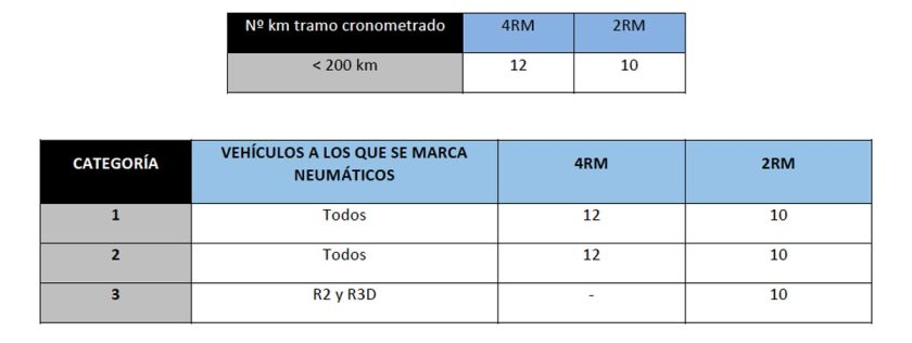 Tras reunión de la Junta de Gobierno, el Presidente decidió elevar a consulta de la Asamblea una nueva redacción en los siguientes términos: «En las pruebas de rango Federación Canaria de Automovilismo, en materia de neumáticos, se estará a lo dispuesto en el Reglamento Deportivo del CERA de la RFEDA, artículo 21 en su totalidad, a excepción del número máximo de neumáticos de cualquier tipo (seco, mixto o o a agua) a utilizar por rallye y tipo de vehículo será el aprobado el pasado mes de febrero». Es decir, 12 neumáticos para los cuatro ruedas motrices y 10 para los de propulsión o tracción.