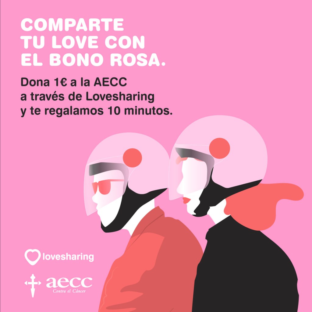 Como el propio nombre de la marca indica, compartir es uno de los principios que define a Lovesharing y a través de esta filosofía nace el Bono Rosa, creado específicamente para el Día Mundial Contra el Cáncer de Mama. El Bono Rosa busca recaudar fondos entre sus más de 8.000 usuarios registrados ofreciendo 10 minutos de servicio a aquellos que realicen un donativo de 1€ . La acción se inicia hoy, lunes 19 de octubre día mundial de la causa, a través de la App de Lovesharing. Una fórmula muy sencilla para un gesto de gran valor.