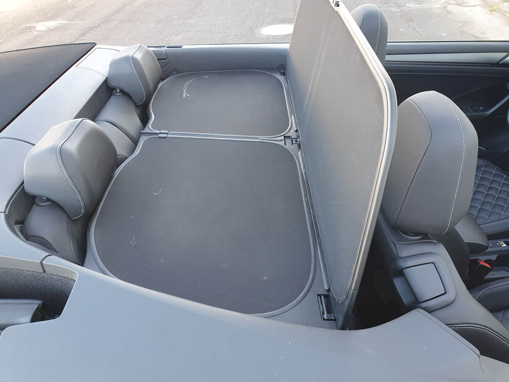 La capota se pliega en forma de Z detrás de los asientos traseros y su gran cercha delantera sirve de cubierta. Cuando la capota está cerrada, las molduras de sujeción evitan que se hinche cuando se circula a velocidades altas. A bordo, reina una agradable tranquilidad, también gracias a las elaboradas juntas de puertas y ventanillas.