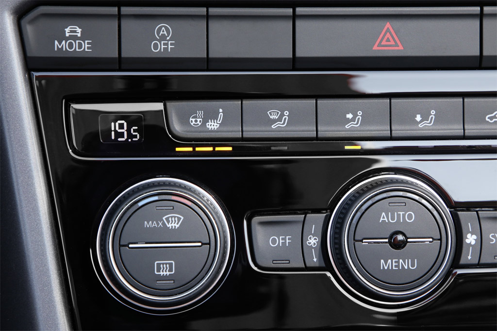 El sistema de vigilancia “Front Assist” es un equipamiento de serie.Utiliza el radar frontal, que mide a una distancia de hasta 200 m con un ángulo de apertura de 60 grados y coopera con la cámara. El “Front Assist” puede evitar accidentes con otros vehículos, peatones y ciclistas que se encuentran delante del coche o reducir sus consecuencias. Envía un aviso óptico, acústico y táctil al conductor y, en caso de emergencia, activa una frenada a fondo. El asistente de frenado anti colisiones múltiples, para evitar colisiones derivadas, el sistema de aviso de salida del carril “Lane Assist” y el sistema de detección del cansancio también forman parte del equipamiento de serie.