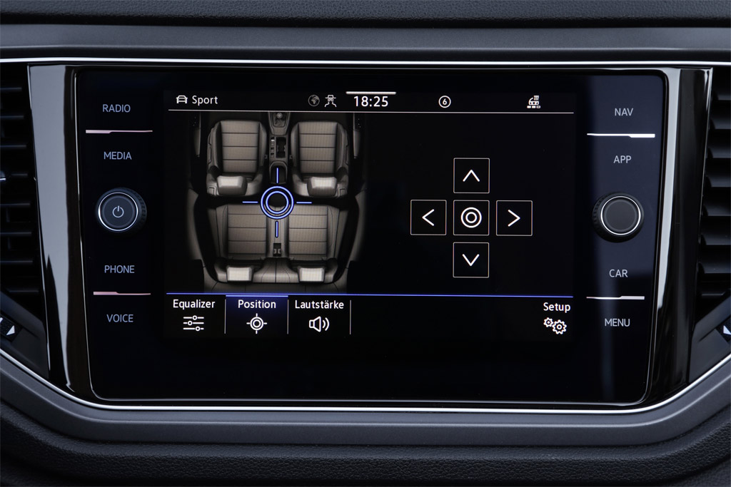 Concepto de uso digital. El sistema de infotainment “Discover Media”, forma parte de la última generación de dispositivos de Infotainment y cuenta con una unidad de control del módulo de llamada de emergencia y una unidad de comunicación (OCU) que integra una tarjeta eSIM. Conecta el coche con el entorno y los teléfonos inteligentes del usuario y, además, permite utilizar muchas funciones y servicios nuevos de We Connect y We Connect Plus. El sistema de sonido de 6 altavoces, 12 canales y 400W de potencia total “beats” permite disfrutar de la música de forma relajada.