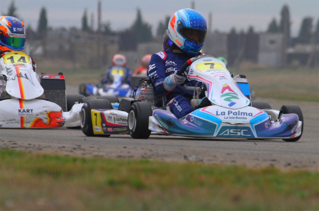 En Zuera, las sensaciones y el ritmo no eran malos, todo lo contrario. Mezclado entre los más rápidos, el piloto de los Llanos de Aridane fue quinto en la primera carrera del sábado –posteriormente recibió una penalización que le retrasó- e iba séptimo en la carrera larga, justo antes de que se subieran encima de su kart, lo que le retrasó un buen número de posiciones. Ese lance le iba a privar de luchar por el podio absoluto en términos absolutos.