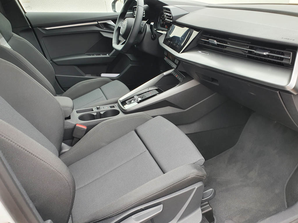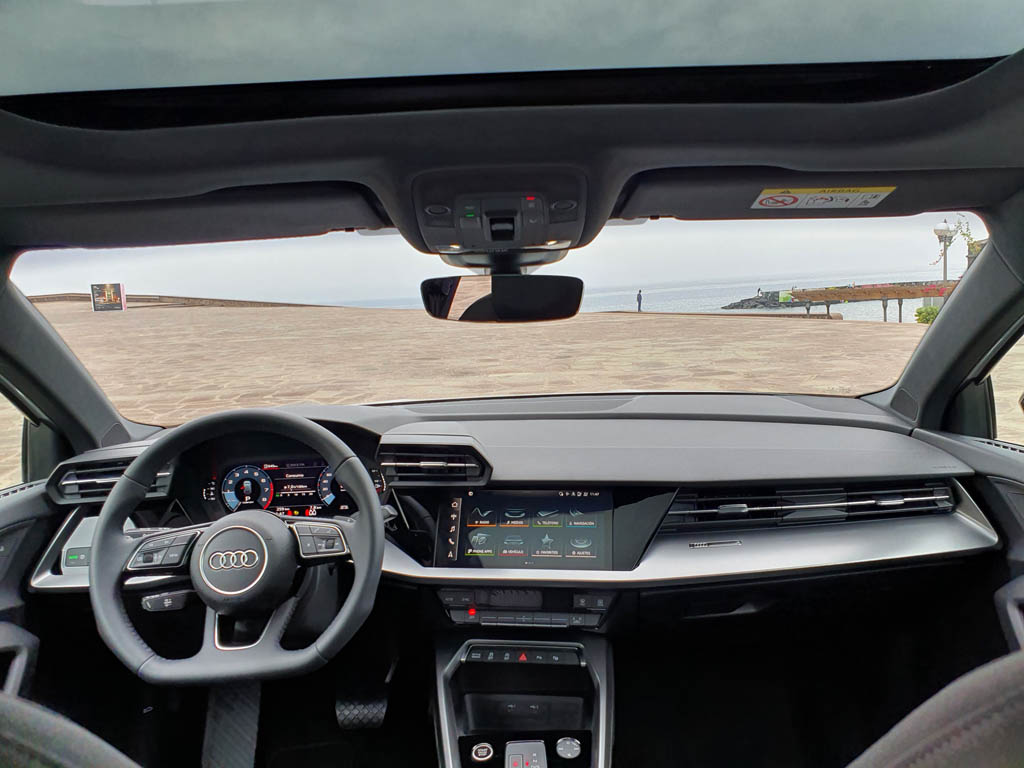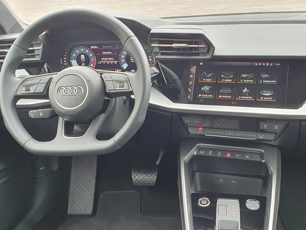 Entrar en el nuevo Audi A3 Sportback supone experimentar el equilibrio perfecto entre diseño, confort y funcionalidad. El carácter deportivo y sofisticado propios de este compacto premium, también lo percibimos nada más acceder al vehículo. Con un interior totalmente enfocado hacia el conductor, la pantalla MMI se integra a la perfección gracias a su acabado black panel. Este modelo presenta una nueva palanca de cambios, y inserciones de aluminio o carbono, llamativos tiradores en las puertas y un salpicadero con un aspecto más innovador y digital. Para su tapicería, por primera vez, Audi utiliza materiales fabricados a partir de botellas de polietileno recicladas como parte de su apuesta por la vanguardia y la sostenibilidad. Esta tapicería, disponible opcionalmente en el nuevo Audi A3 Sportback, siempre vendrá adornada con elegantes costuras de contraste. Con todo esto, el nuevo Audi A3 Sportback presume de un interior digno de un vehículo de gama superior y además lo confirma como uno de los vehículos más avanzados del momento.