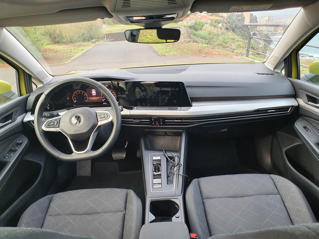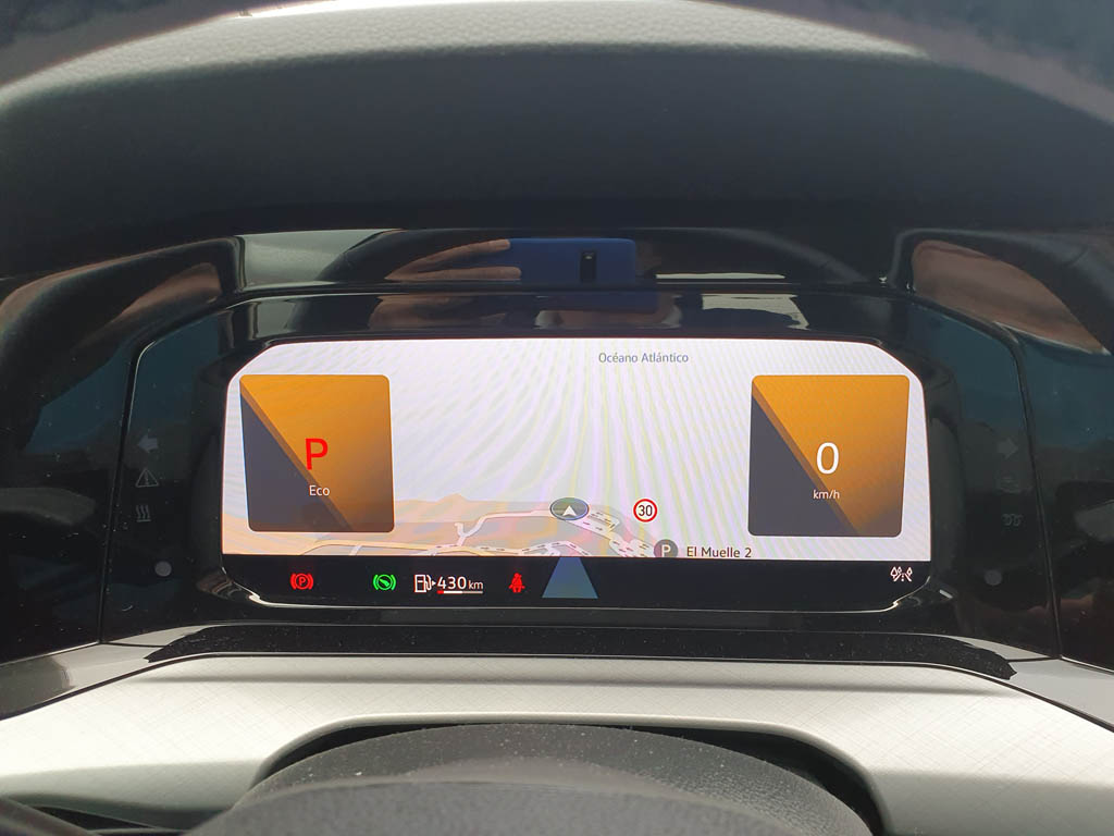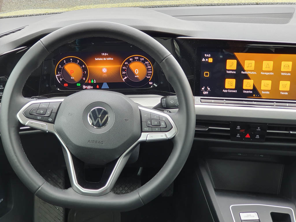 Al volante del nuevo Golf se disfruta de una experiencia de conducción totalmente digitalizada y conectada. El interior de esta octava generación se convierte en un entorno completamente digital gracias a los nuevos instrumentos y sistemas de infoentretenimiento alrededor del conductor, donde los botones han dejado paso a paneles de control 100% táctiles. El Golf equipa de serie el Digital Cockpit de 10,25” orientado hacia el conductor para facilitar su vista y navegación. El sistema de navegación “Discover Media”, también táctil y disponible opcionalmente, se presenta en una pantalla de 10” de serie que permite controlar todos los ajustes del vehículo. De esta manera se consigue, además, un aspecto diáfano y minimalista en su interior, en el que se cuida hasta el último detalle; las funciones de luces y el climatizador por zonas también se controlan digitalmente, al igual que su luz ambiental que permite, al caer la noche, elegir entre 30 colores diferentes. Los colores y los tejidos frescos completan el aspecto moderno e innovador del nuevo compacto.