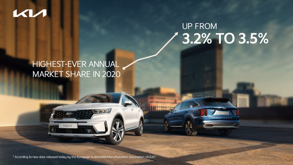 En 2020, Kia ha alcanzado su mayor penetración en el mercado europeo y registra uno de los mayores incrementos anuales de cuota de mercado en toda su historia. Según los nuevos datos publicados por la Asociación Europea de Fabricantes de Automóviles (ACEA), la cuota de mercado de Kia en Europa se incrementó de un 3,2% al 3,5% en el transcurso del año pasado.