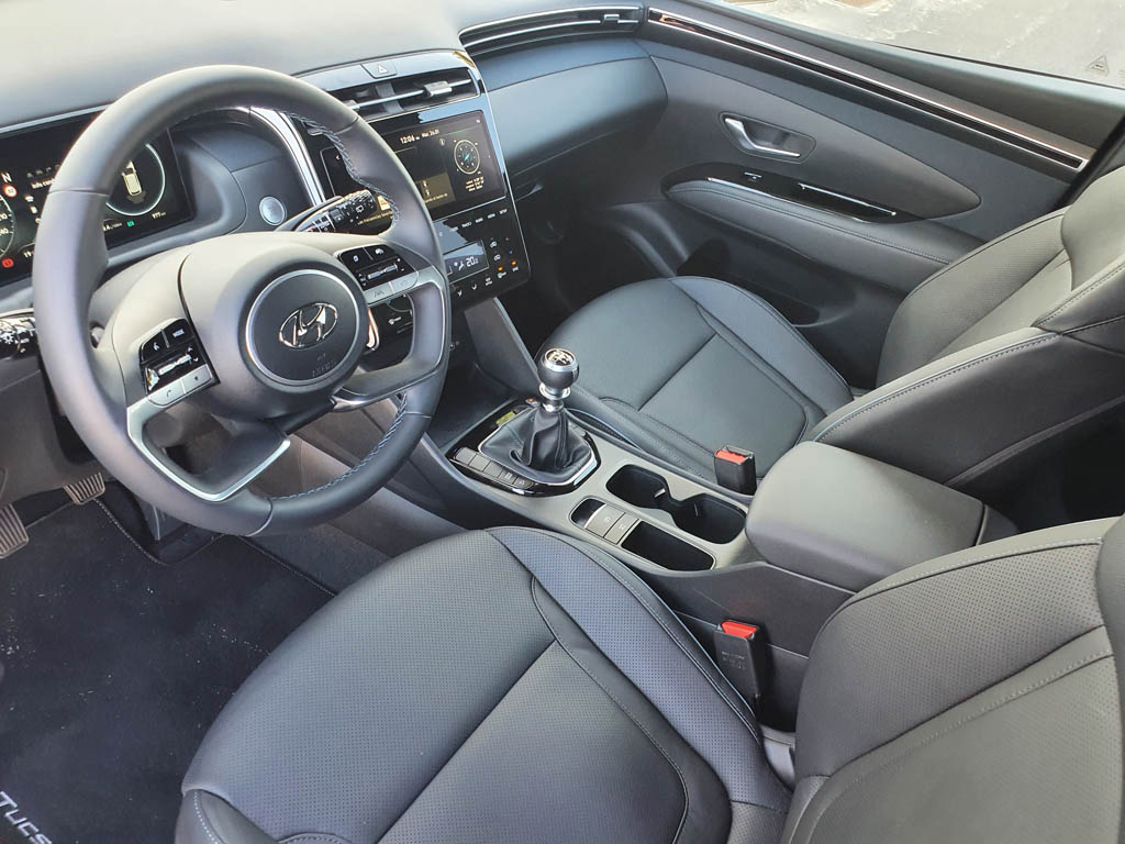 Los clientes del Nuevo TUCSON tienen la opción de equipar la transmisión manual inteligente iMT, desarrollada recientemente por Hyundai. El embrague de la iMT, combinado con las opciones híbridas ligeras de gasolina de 48 voltios, funciona de forma totalmente electrónica y desacopla el motor de la transmisión cuando el conductor levanta el pie del acelerador mientras conduce a velocidad constante, lo que permite que el vehículo entre en modo de navegación a vela. Esto mejora de manera general la eficiencia de combustible. Hay dos niveles de navegación a vela: con el motor encendido y en ralentí y con el motor apagado. La marcha elegida por el conductor permanece engranada incluso con el motor apagado. Asimismo, el motor se reinicia en la misma marcha tan pronto como el conductor pise el pedal del freno o del acelerador gracias a la potencia proporcionada por el generador y motor de arranque MHSG del sistema de hibridación ligera. La transmisión reinicia el motor en punto muerto (con embrague abierto) si el conductor pisa el pedal del embrague para cambiar de marcha o si la velocidad del vehículo es demasiado baja para insertar la marcha acoplada previamente.
