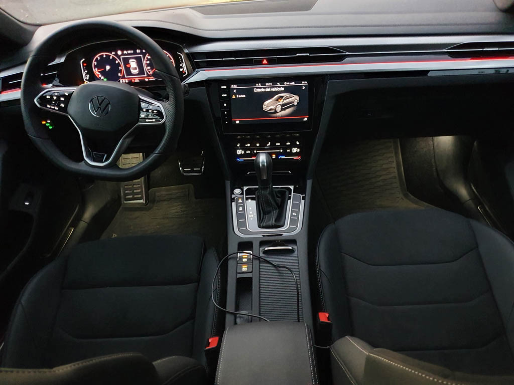 Por gentiliza de Volkswagen Canarias nos hemos puesto al volante de un vehículo con la máxima expresión de elegancia y toda la deportividad se únen para dar forma a un modelo único el Arteon R-Line, objeto de nuestra prueba equipado con un motor de 2 litros TSI que desarrolla una potencia de 190 CV, con una transmisión automática DSG7.
