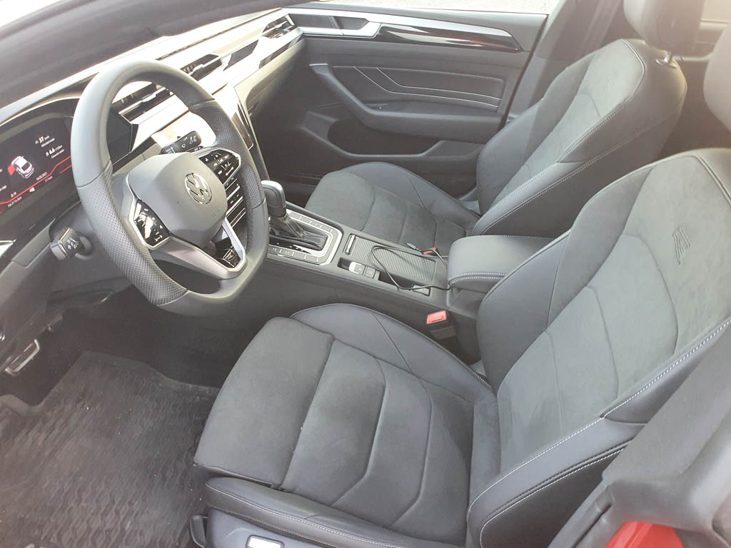 El interior de la serie se ha equipado con un puesto de conducción de nuevo y exclusivo diseño que se ha adaptado al carisma y la exclusividad del Arteon. Además, el manejo se simplifica mediante deslizadores táctiles para el climatizador automático y un volante multifunción con superficies táctiles, también de nuevo diseño. Otras novedades son: la conexión inalámbrica de aplicaciones mediante «AppConnect Wireless» para «Apple CarPlay» y «Android Auto» (Google), así como un sistema de sonido con 700 vatios de potencia del especialista en sonido Harman/Kardon especialmente adaptado al Arteon. Si se desea, el nuevo interior se puede optimizar mediante una iluminación ambiental ajustable en hasta 30 colores, que ilumina los elementos decorativos en los instrumentos y guarnecidos de las puertas — iluminación «new chrome»—.