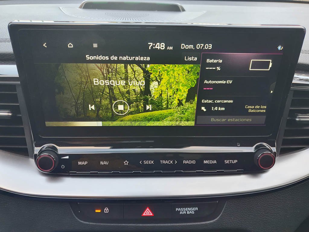 De manera exclusiva el Kia XCeed híbrido enchufable incorpora nuevas funciones para ayudar a los propietarios a localizar los puntos de carga disponibles en sus proximidades o en ruta hacia su destino de navegación. Las pantallas también pueden mostrar información relevante relacionada con el sistema de propulsión, como los niveles de carga restantes en la batería o gráficos de uso de energía. Además, los usuarios pueden utilizar el sistema de pantalla táctil para programar el momento en que su vehículo debe cargarse cuando está enchufado en casa, lo que permite aprovechar las tarifas reducidas de energía.