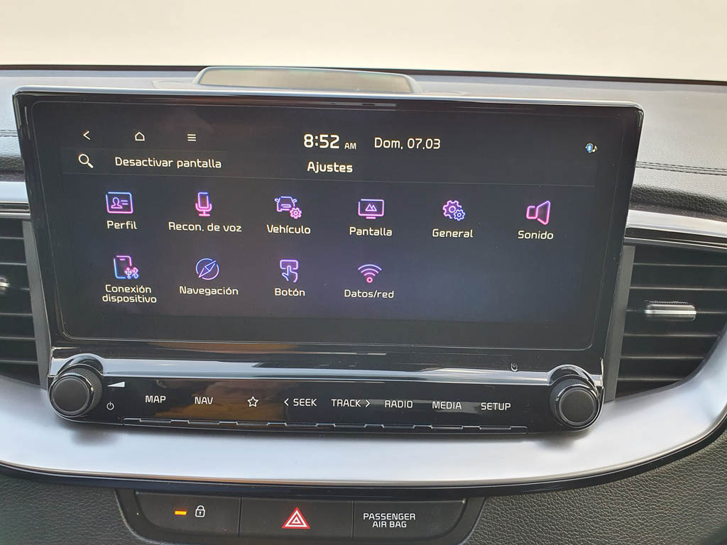 Ofrece el sistema de infoentretenimiento con pantalla táctil de 8,0 pulgadas (20 cm) de Kia, o un sistema opcional de infoentretenimiento y navegación con pantalla táctil de 10,25 pulgadas (26 cm) con el sistema telemático UVO Connect de Kia para las versiones superiores.