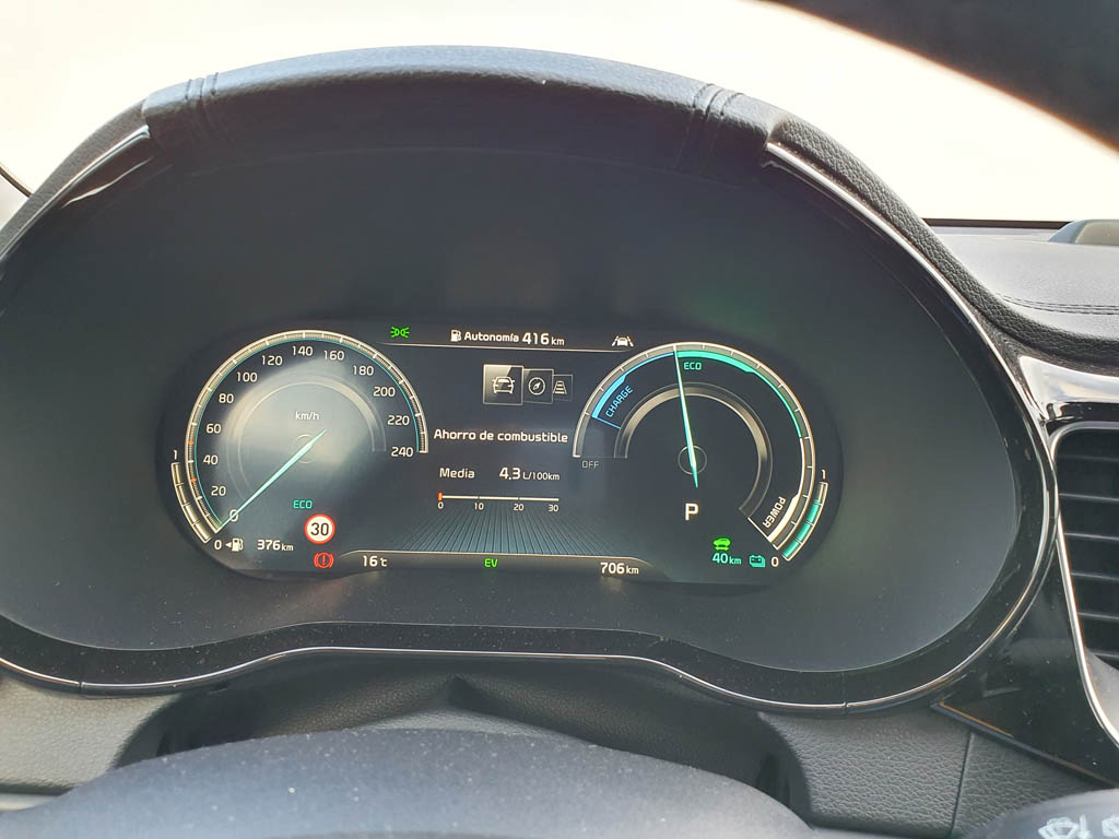 La instrumentación también presenta imágenes específicas para el sistema de propulsión híbrido enchufable del Kia, como el nivel de carga restante, la autonomía eléctrica prevista y el flujo de energía entre la batería, el motor térmico y el eléctrico. Disponible como opción, la nueva instrumentación «Supervision» de 12,3 pulgadas (31 cm) totalmente digital de Kia está diseñada para ofrecer información lo más clara posible con una gama de pantallas gráficas únicas. La pantalla de alta resolución de 1920 x 720 píxeles «Supervision» sustituye con una pantalla única y continua a los indicadores convencionales de velocímetro y tacómetro, presentes actualmente en los modelos de la marca.
