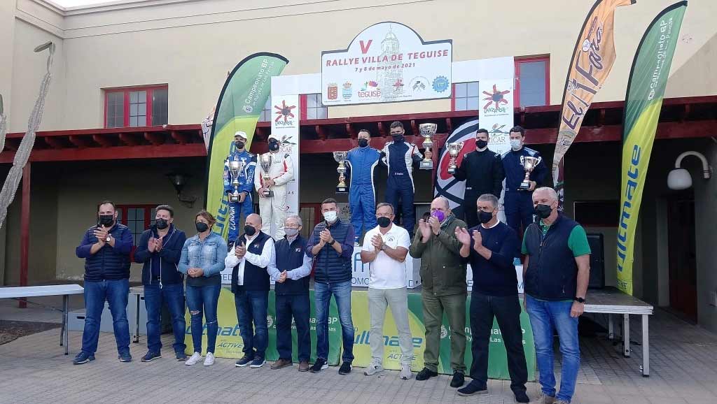 La prueba finaliza con la ceremonia de entrega de trofeos con restricciones de público en el interior del propio CAT de Teguise, donde los principales protagonistas fueron Suárez y Espino -en el caso del piloto por segunda vez en su palmarés-, recogiendo los trofeos de claros ganadores de la quinta edición del Villa de Teguise y situándose los vigentes campeones lanzaroteños como líderes en 2021.