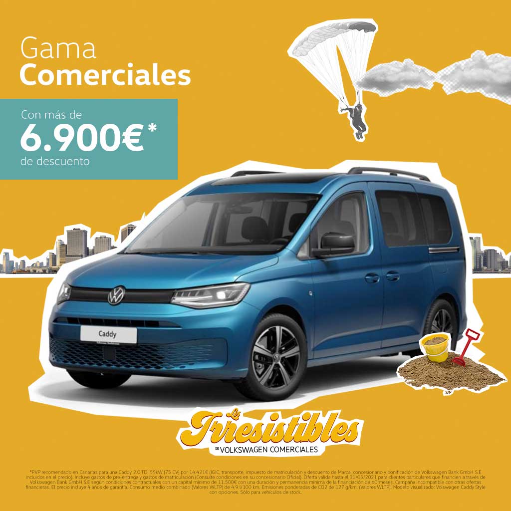 Hasta el 31 de mayo Volkswagen Comerciales Canarias aplica descuentos irresistibles en toda su gama de modelos en stock. Asimismo, la marca azul ofrece sorprendentes descuentos en sus modelos más deseados, como la práctica y novedosa Caddy, la robusta Transporter, la versátil Multivan o la inigualable Crafter.