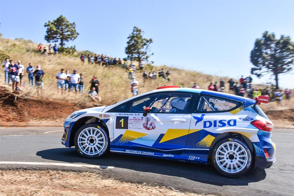 Un rallye que cumplió con la previsión de ser muy exigente y en el que un desafortunado pinchazo en el sexto tramo dejaba sin opciones de lucha por el triunfo a Enrique Cruz y Yeray Mujica con el Ford Fiesta Rally2 de DISA Copi Sport y Archiauto. Pese a las dificultades, lograron concluir la prueba en la tercera plaza del pódium.