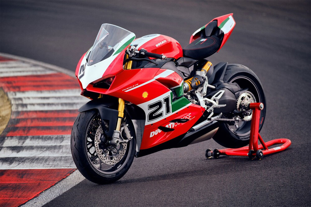 Realizada partiendo de la base de la Panigale V2, la versión «Bayliss 1st Championship 20th Anniversary» se caracteriza por su especial librea, cuyos gráficos están inspirados en la del 996 R que en la temporada 2001 impulsó a Bayliss a la conquista de su primer título mundial, revisitando sus colores y cortes. El rojo de Ducati es el color principal de la moto, y une el verde y el blanco en un homenaje al espíritu italiano del fabricante de motocicletas con sede en Bolonia, mientras que el icónico #21, el número de carrera de Troy Bayliss y el logotipo de Shell, que refuerzan visualmente el vínculo con la moto de carreras, destacan en los laterales y en la parte delantera. El autógrafo de Troy figura reproducido en el depósito de combustible, mientras que la triple abrazadera de aluminio muestra el nombre de la moto y la numeración progresiva de este modelo único.