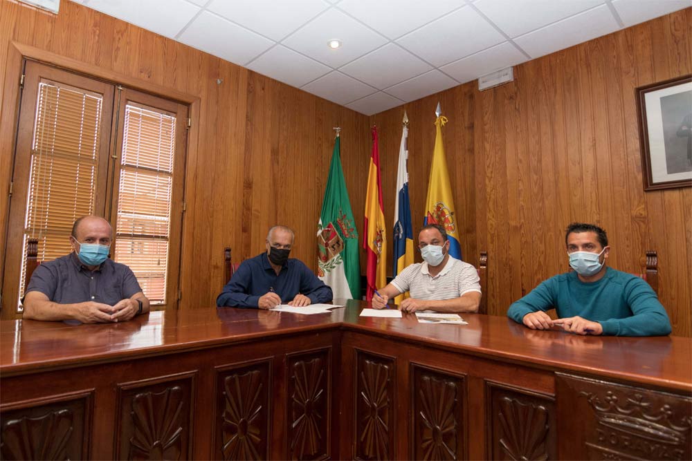 Gilberto Sosa, concejal de Deportes, y Miguel Espino, coordinador de seguridad del 45 Rally Islas Canarias, acompañaron a Raúl Afonso y Germán Morales en la firma del convenio de colaboración.