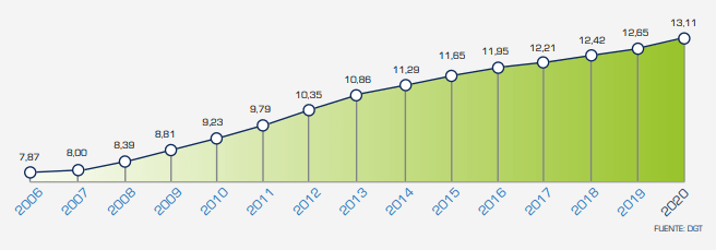 El 63,7% de los turismos que circulan por España tienen más de 10 años, según señala la Asociación Española de Fabricantes de Automóviles y Camiones (ANFAC), en el Informe Anual 2020. Asimismo, en nuestro país ya superan la década de antigüedad el 63% de vehículos comerciales ligeros; el 67% de los industriales, y el 55% de los autobuses y microbuses. Según ANFAC, las ventas de vehículos de alta antigüedad se situaron en 1.116.939 turismos, superando a las 851.210 matriculaciones de turismos nuevos. Esto indica que en 2020 por cada turismo nuevo vendido se vendieron 1,3 turismos de más de 10 años.