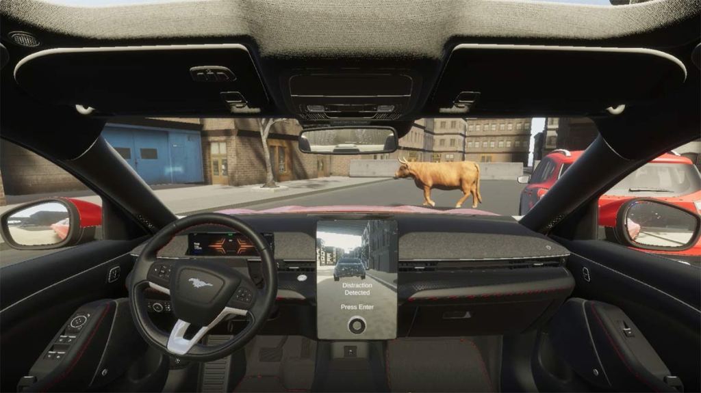 El juego también incluía una vaca que pasaba por delante del vehículo, para probar la rapidez con la que los participantes reaccionaban y detenían el vehículo. Los tiempos de reacción más largos podrían dar lugar a cambios en la función de aparcamiento automático, con el vehículo configurado para moverse a una velocidad más lenta, o la función adaptada a conductores específicos.