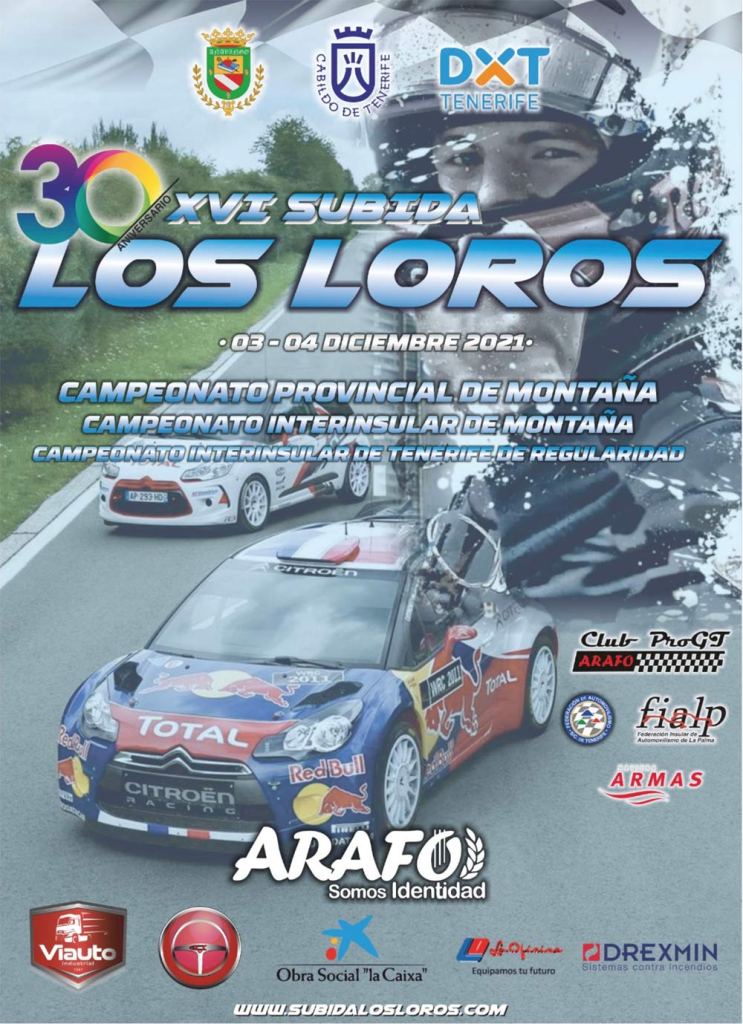 La XVI Subida Los Loros cuenta con el apoyo del Cabildo de Tenerife, el Iltre. Ayundamiento de Arafo, Ireauto, Viauto, Drexmin, La Oficina, Obra Social “la Caixa” y Naviera Armas.