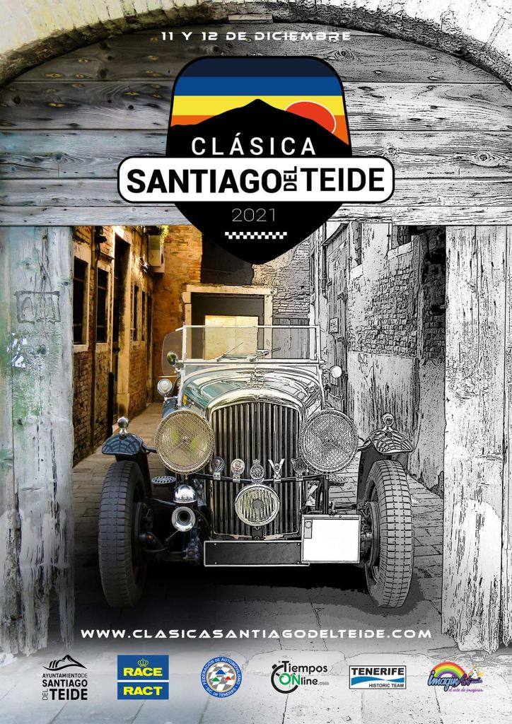 La I Clásica Santiago del Teide ha ido desvelando detalles interesantes en las semanas previas de su celebración los próximos 11 y 12 de diciembre (sábado y domingo), como por ejemplo el cartel anunciador. Un Bentley Speed Six acapara la totalidad creativa y ejemplifica los conceptos de esta prueba de nueva creación: pureza, sencillez, elegancia y deportividad. En ella se enumeran de forma discreta la nómina de instituciones, patrocinadores y colaboradores que hacen posible su celebración, encabezados por el Ayuntamiento anfitrión de Santiago del Teide. El RACE-RACT ofrece un soporte vital, mientras la Federación Interinsular de Automovilismo de Santa Cruz de Tenerife (FIASCT) e ImaginArt Canarias aportan logística y diseño. Por último, TiemposOnLine.com y Tenerife Historic Team como coorganizadores de la prueba.