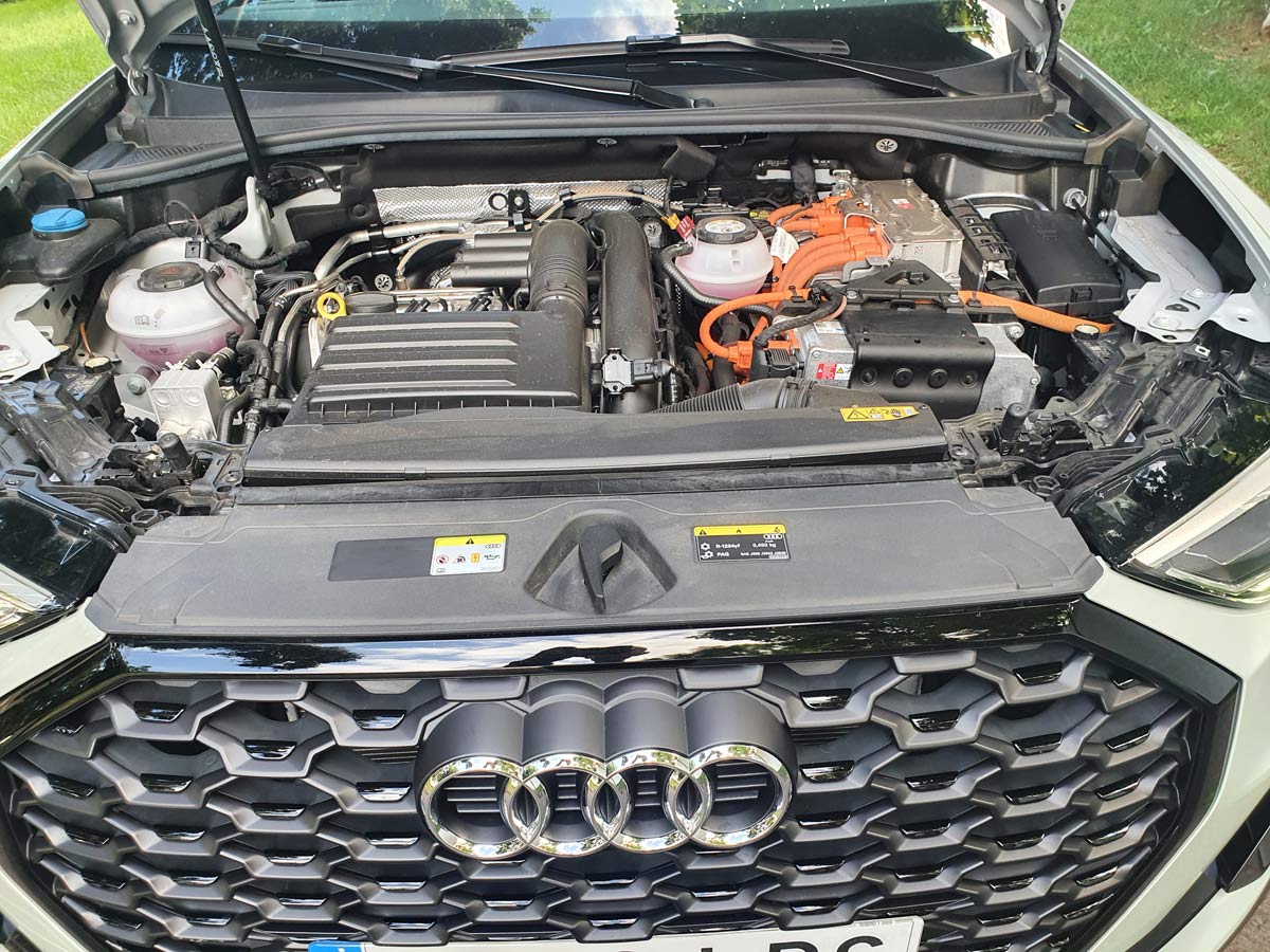 El Audi Q3 TFSIe híbrido enchufable utilizan un bloque 1.4 TFSI de cuatro cilindros como motor de combustión, que entrega una potencia de 110 kW (150 CV). Esta unidad se