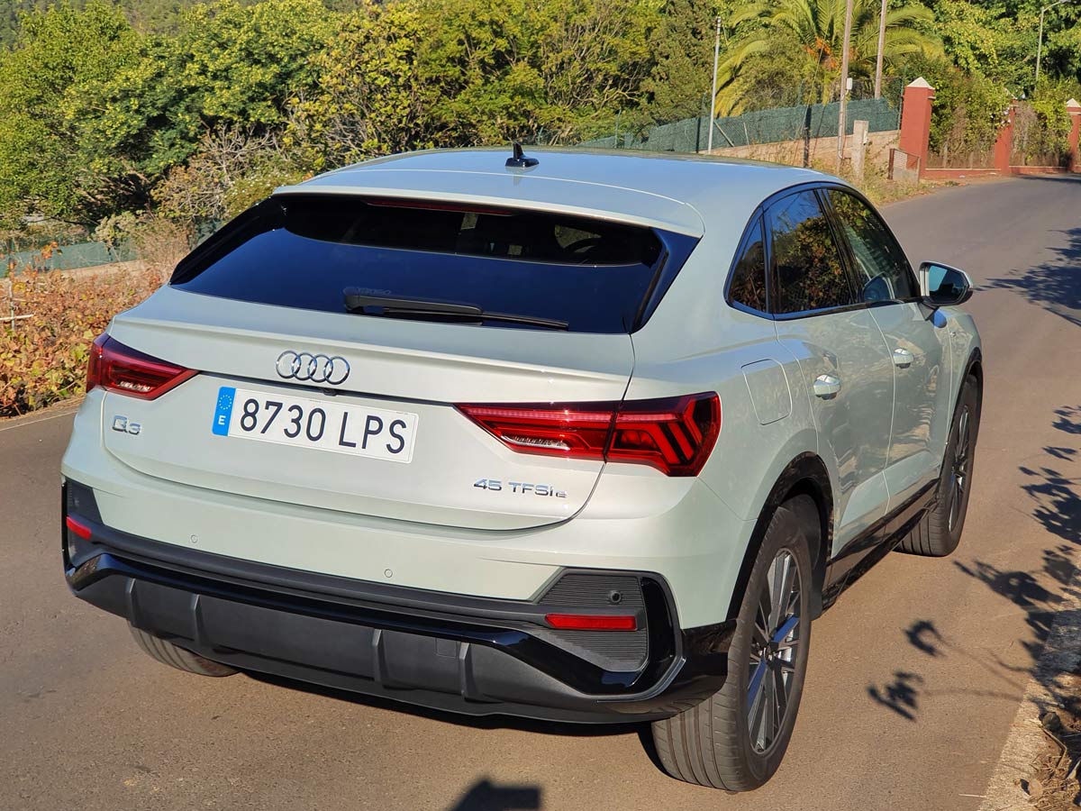 La capacidad del maletero es de 380 litros, y puede ampliarse abatiendo los asientos traseros para alcanzar 1.375 litros en el Q3 45 TFSIe. De serie, en la versión S Line objeto de nuestra prueba dinámica, se encuentra el portón trasero eléctrico que también puede abrirse de forma remota sin utilizar la llave, mediante un movimiento pasando el pie bajo el paragolpes.