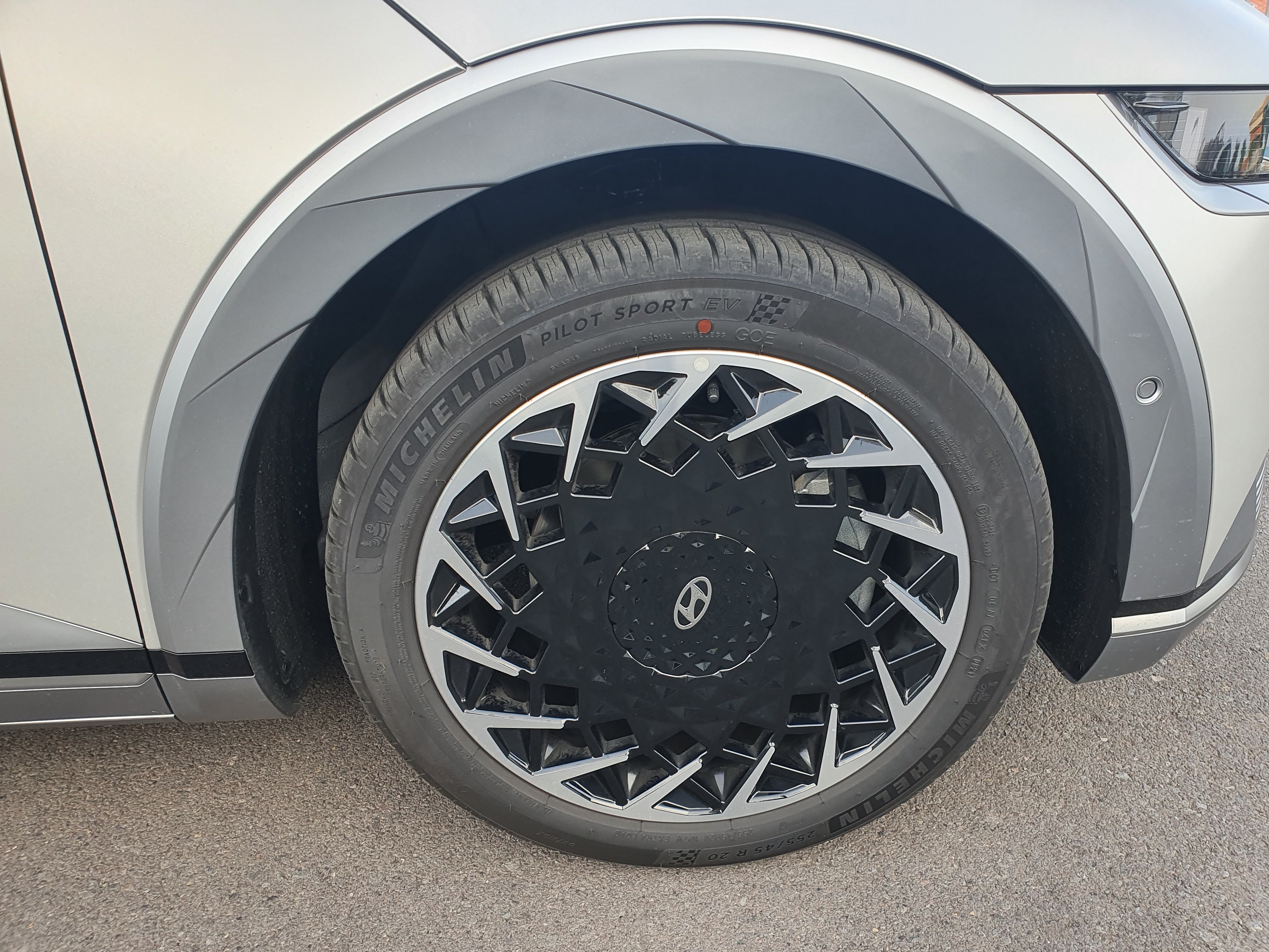 Las llantas aerodinámicas se hacen eco del esquema de diseño de píxeles paramétricos y se ofrecen con un diámetro de 20 pulgadas, las más grandes jamás equipadas en un vehículo eléctrico de Hyundai. Estas llantas completan las perfeccionadas dimensiones del IONIQ 5, optimizadas para la plataforma E-GMP de Hyundai.