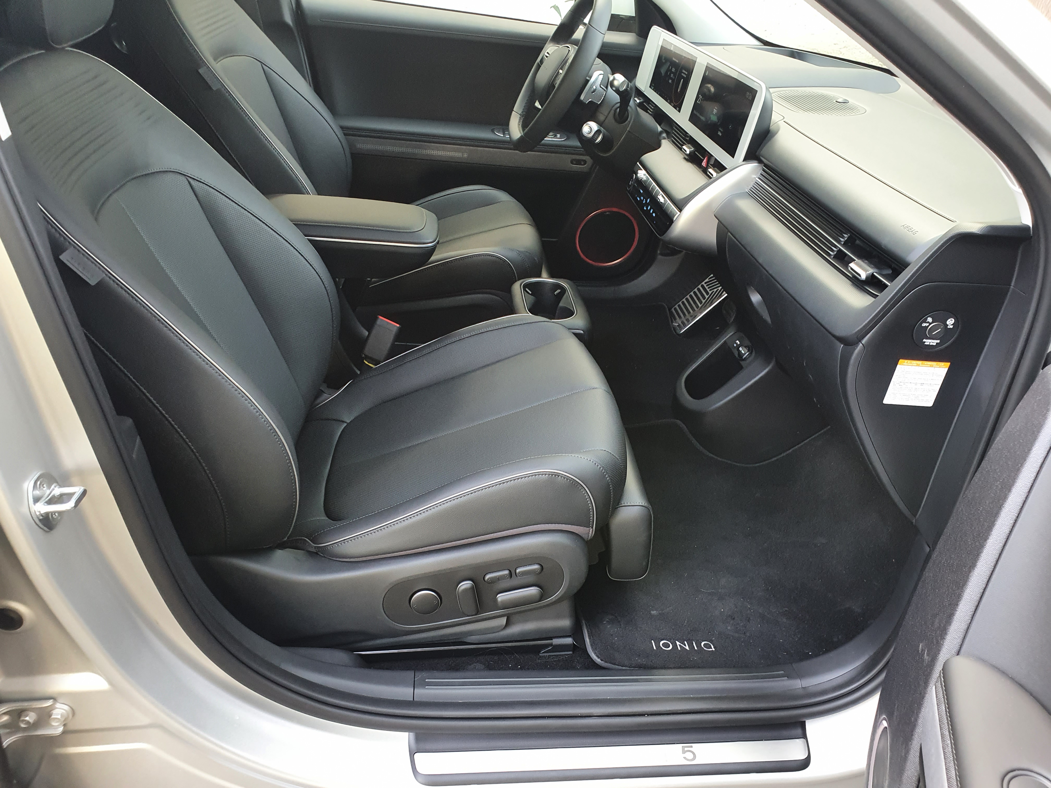 El IONIQ 5 se diferencia de otros CUV de tamaño medio, especialmente de aquellos con motores de combustión interna y sistemas convencionales de dirección asistida por cable, ya que la E-GMP cuenta con un suelo plano en el que se almacenan las baterías, lo que ha permitido desarrollar un diseño interior innovador y ofrecer un espacio extra para las piernas.