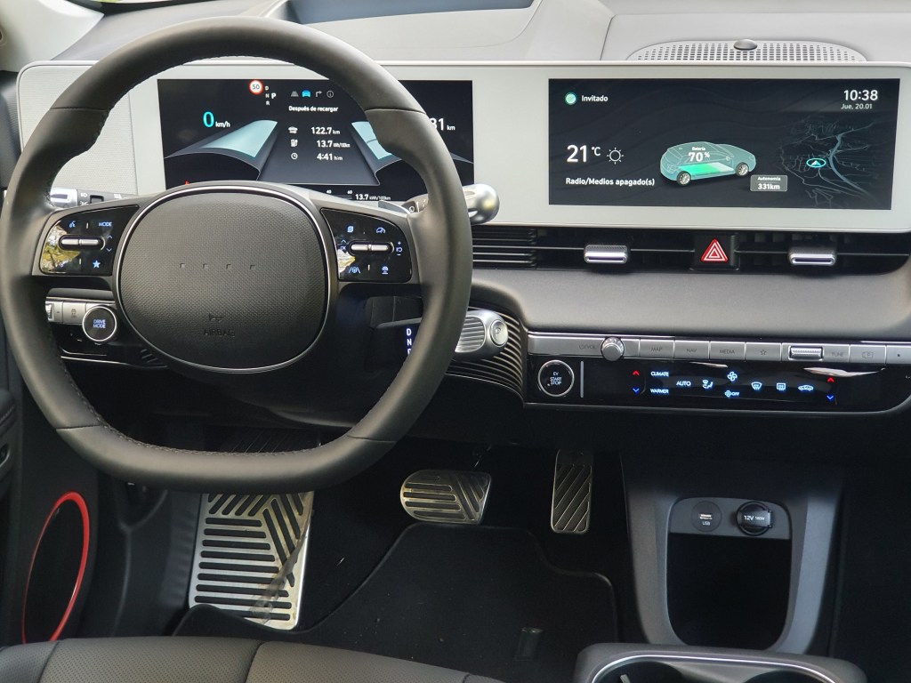 El IONIQ 5 integra a la perfección tecnologías avanzadas para mejorar la experiencia digital del usuario. El amplio y configurable dual cockpit cuenta con una pantalla de infoentretenimiento de 12 pulgadas completamente táctil y un cuadro de instrumentos digital de 12 pulgadas sin carcasa que puede personalizarse para satisfacer las necesidades de los clientes.