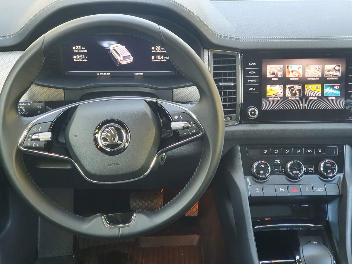 La unidad objeto de nuestras prueba dinámica con el acabado Style, equipado con un motor 1.5 TSI de 150 CV con una caja DSG de 7 velocidades, de color Gris Grafito Metalizado con tapicería Tela/Cuero Style negro y unas llantas de aleación Askella de 18″ Antracita. Además el ŠKODA KODIAQ esta disponible en Canarias en los niveles de acabado Active, Ambition y Style, así como en las variantes L&K, SPORTLINE y RS.
