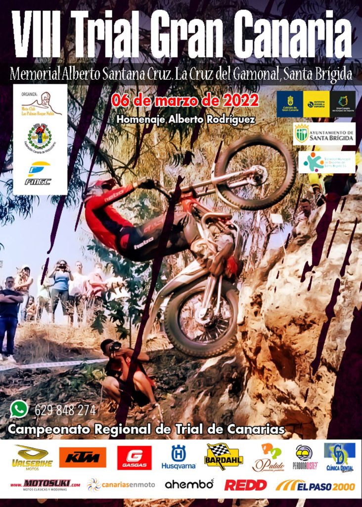Memorial Alberto Santana Cruz. Recuerda el anhelo de nuestro recordado amigo, por hacer un trial de bandera, una referencia para las generaciones venideras y en esa tesis que labró cerca de 10 años, fraguó el compromiso con el futuro, al que ahora en estos compases de la vida devolvemos la mirada para continuar el proyecto. En la filosofía del evento añadimos además el reconocimiento a todos los pioneros del trial en Canarias, exaltando todas las ediciones un homenaje a uno de ellos. Esta cita del 2022, trae al recuerdo y al homenaje a la figura de Alberto Rodriguez, piloto de Trial y Enduro de la década de los 70, de aquella juventud pionera a esta bella modalidad, que alimentó las parrillas y las competiciones, por ello esta Octava edición del Trial Gran Canaria, se recordará su memoria.