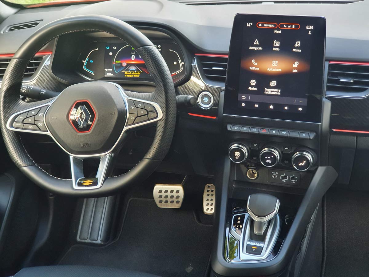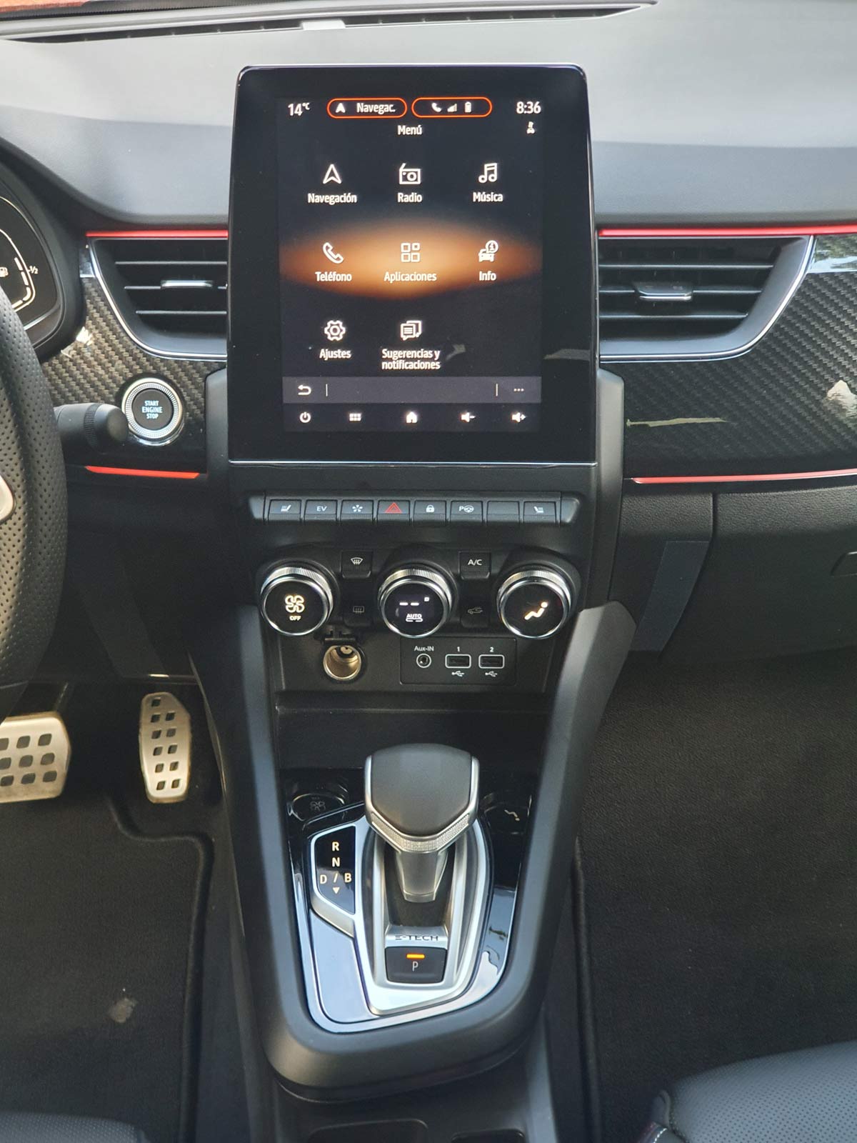 En versión E-TECH Híbrida R.S. Line, la palanca de velocidades de Nuevo Arkana está disponible en versión e-shifter (sin cable mecánico), similar al de Nuevo Espace y al de las versiones superiores de Captur.
