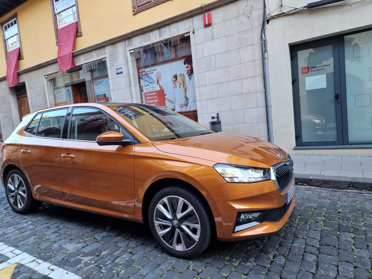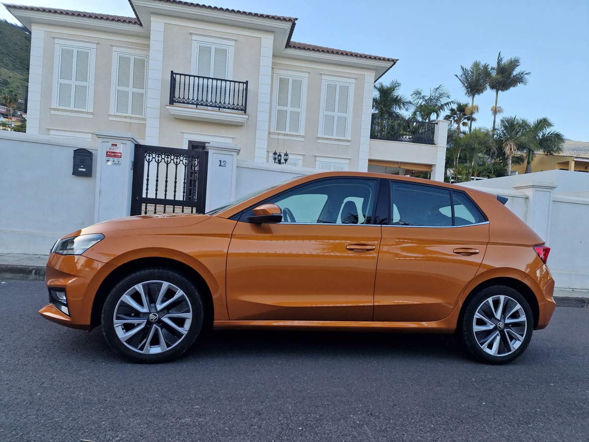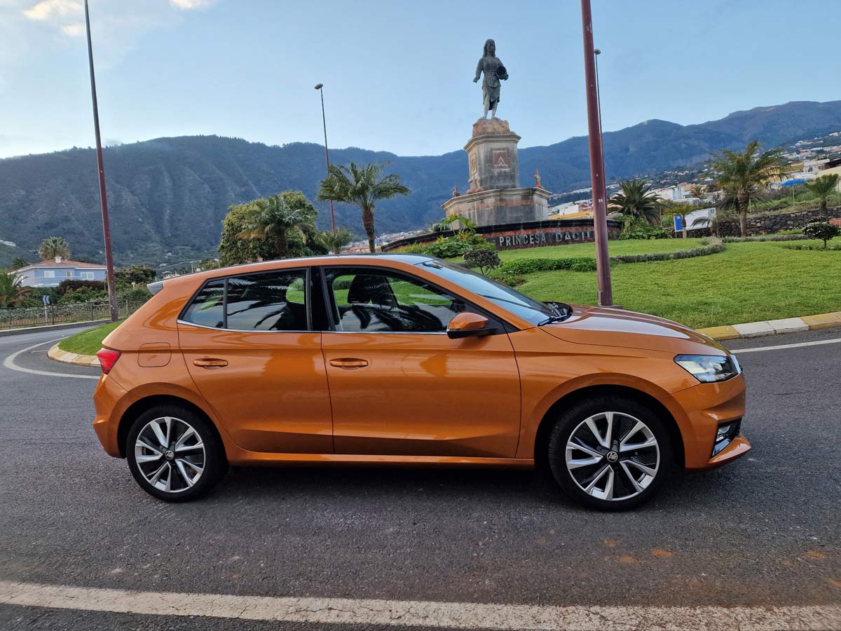 La unidad objeto de nuestra prueba dinámica, cedida por ŠKODA Canarias, equipa un motor 1.0 TSI de 95 CV, con cambio manual de cinco velocidades, de color Naranja Fénix, con una tapicería en Tela-Style de color negro gris. Con un consumo medio de 5,3 L/100Km y unas emisiones de CO2 según WLTP* (g/km) – combinado entre 115,6–126,6, con una aceleración de 0 a 100 en 10,6 segundos.
