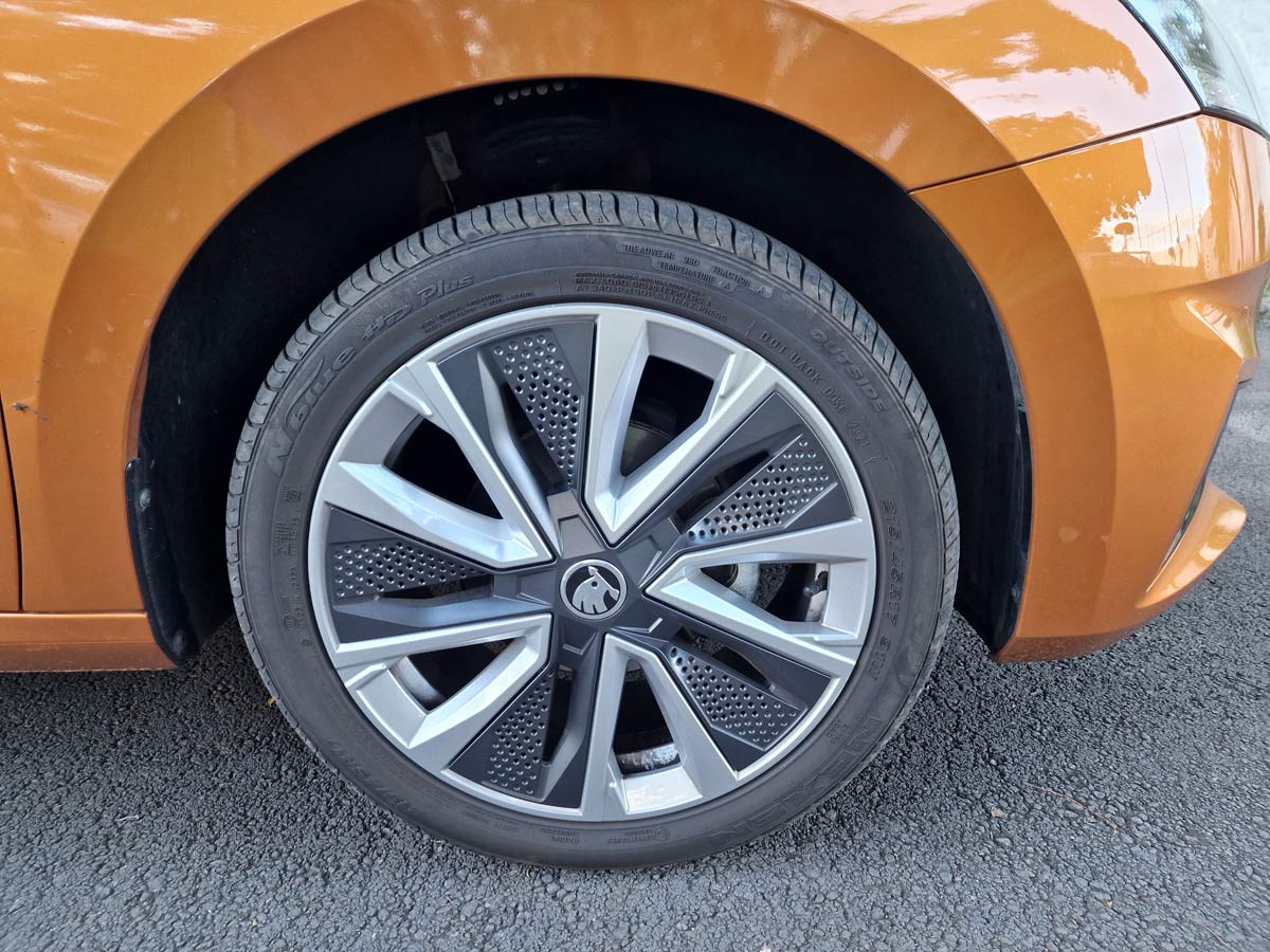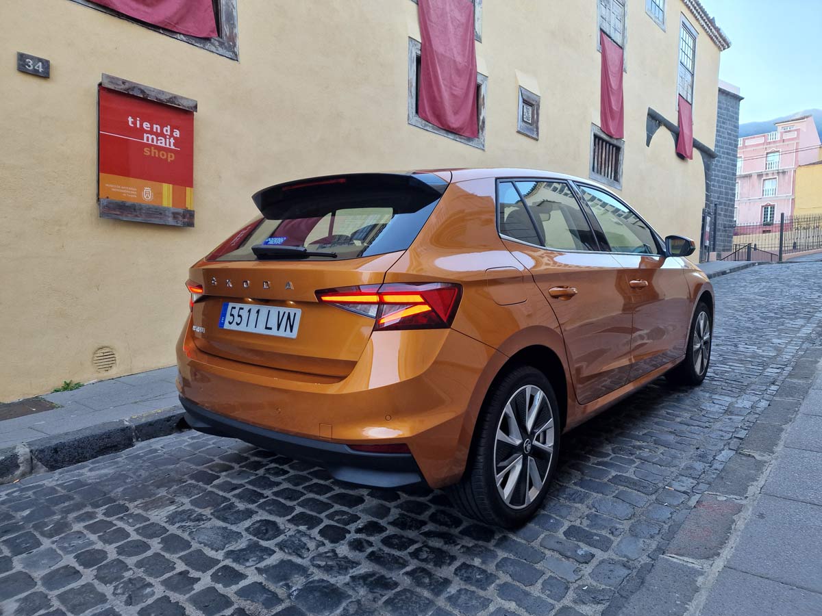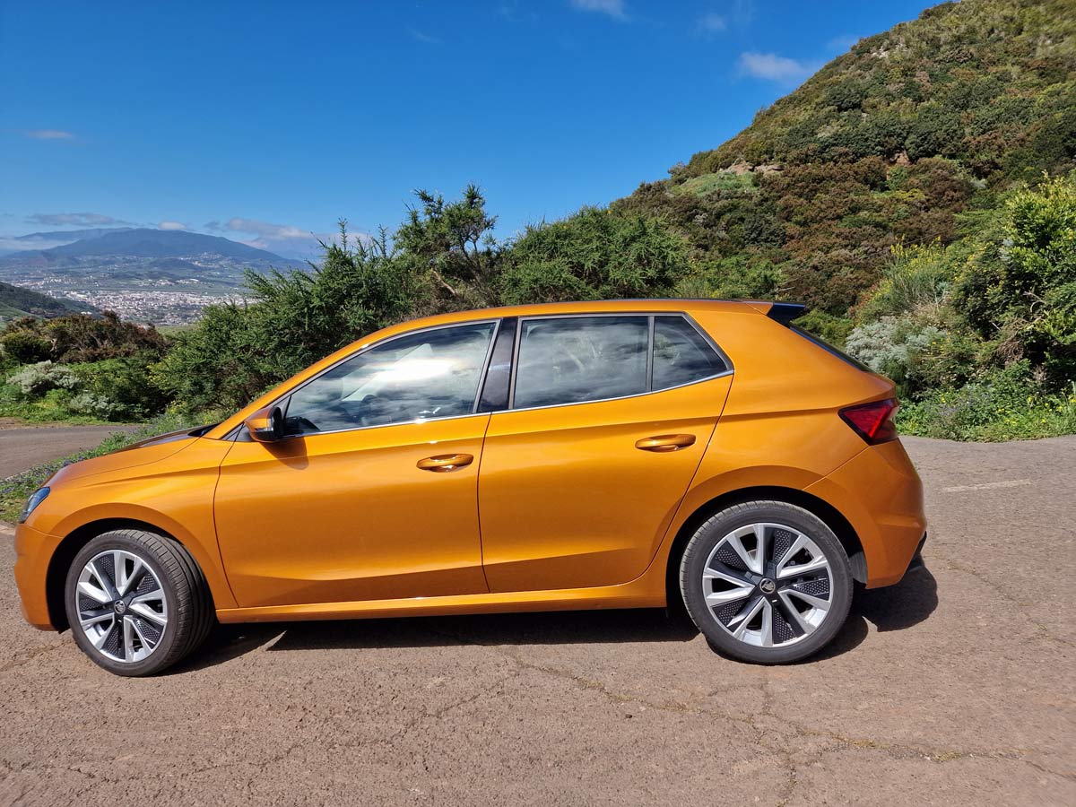 La unidad objeto de nuestra prueba dinámica, cedida por ŠKODA Canarias, equipa un motor 1.0 TSI de 95 CV, con cambio manual de cinco velocidades, de color Naranja Fénix, con una tapicería en Tela-Style de color negro gris. Con un consumo medio de 5,3 L/100Km y unas emisiones de CO2 según WLTP* (g/km) – combinado entre 115,6–126,6, con una aceleración de 0 a 100 en 10,6 segundos.