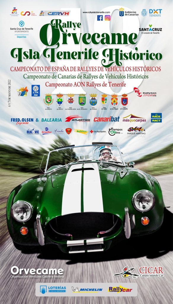 La prueba contará con el patrocinio del Grupo Orvecame-Cicar, RACT-RACE, Neumáticos Atlántico, Canaribat, JC Motorsport (especialistas en Vehículos Históricos de Competición) y los apoyos institucionales del Cabildo Insular de Tenerife, Ayuntamiento de Santa Cruz de Tenerife a través de su concejalía de Deportes, municipio epicentro de la prueba, y el Aporte de los Ayuntamientos de paso, Granadilla, Vilaflor, San Miguel, Arico, Fasnia, El Rosario, Arafo y Candelaria.