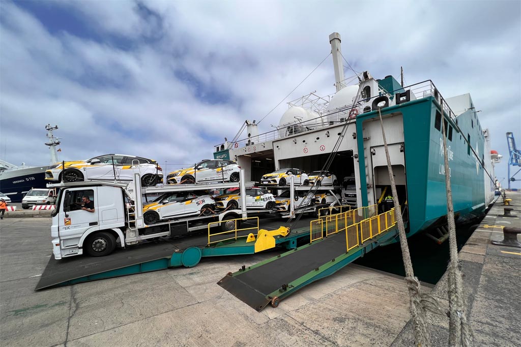 Los vehículos de los equipos internacionales ya han desembarcado en la isla de Gran Canaria.
