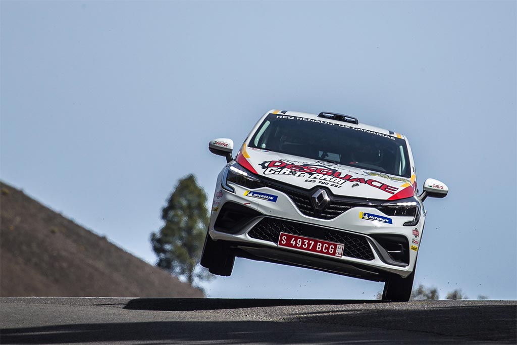 Espectacular debut del joven piloto grancanario y Daniel Rosario a lomos del Renault Clio Rally5, con el que se han adjudicado la victoria del Rallye Islas Canarias entre los participantes del nuevo certamen impulsado por la Red Renault de Canarias, superando además a los equipos internacionales inscritos al Clio Trophy del ERC (European Rally Championship).