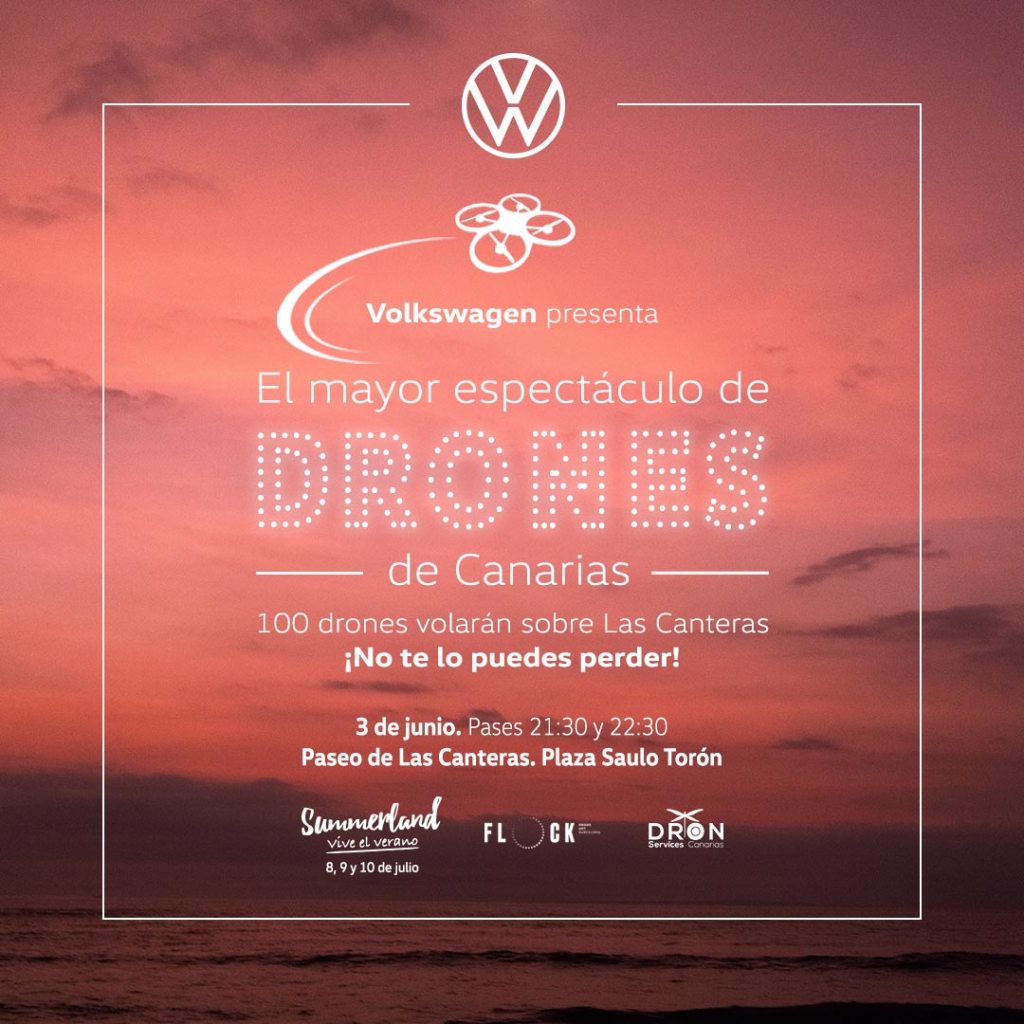 Volkswagen se propone realizar el mayor espectáculo de drones en Canarias y para ello movilizará 100 unidades en los cielos de la icónica Playa de Las Canteras el próximo 3 de junio. Volkswagen acude con esta acción a Summerland con el objetivo de lanzar un mensaje muy especial en torno a la conciencia medioambiental.