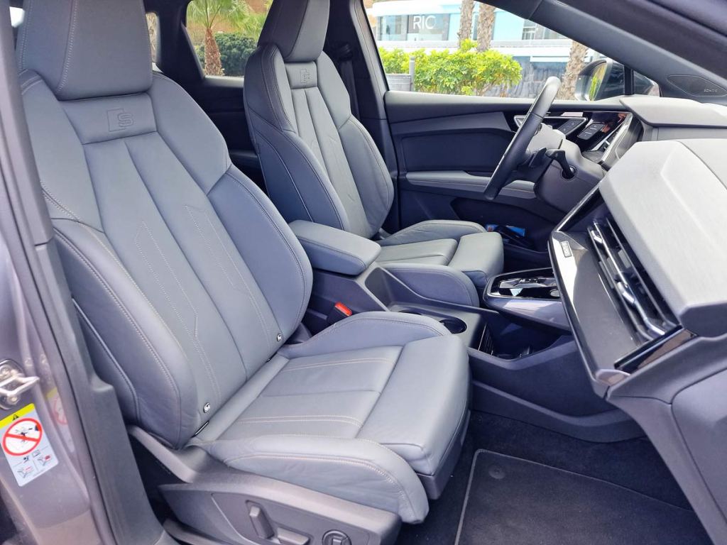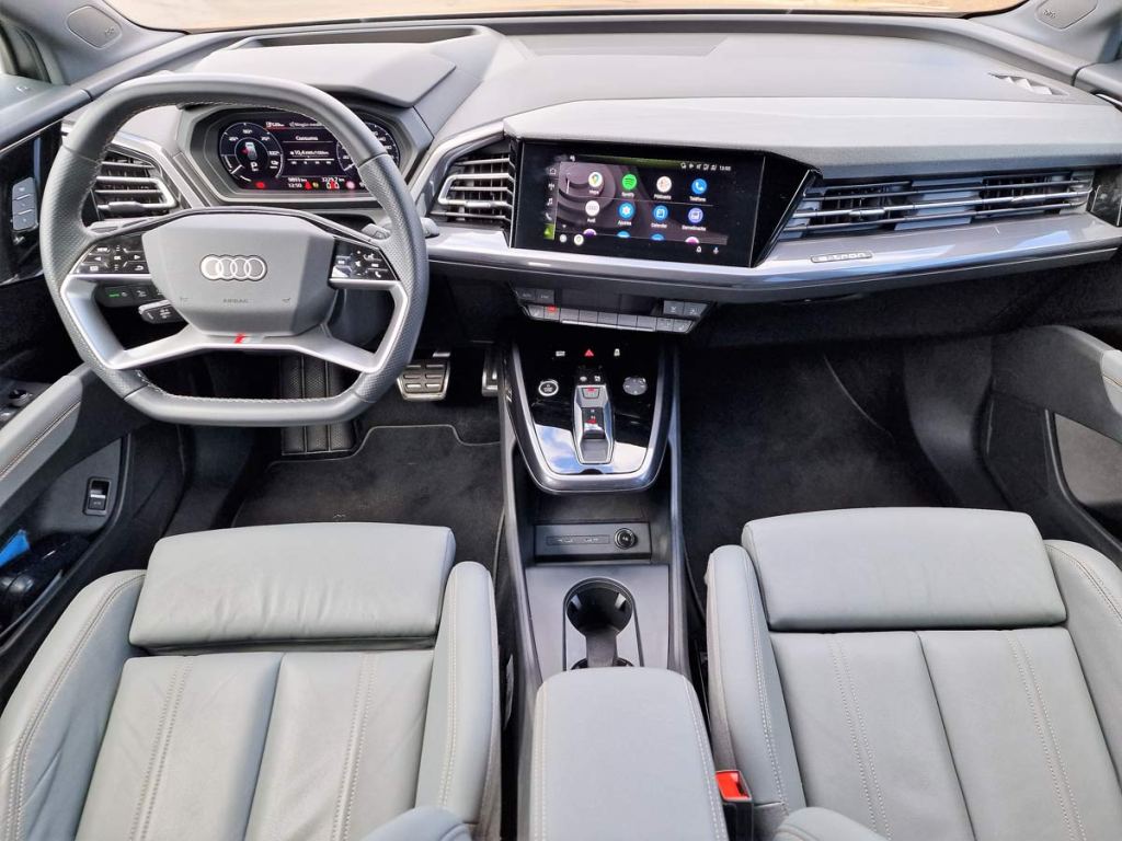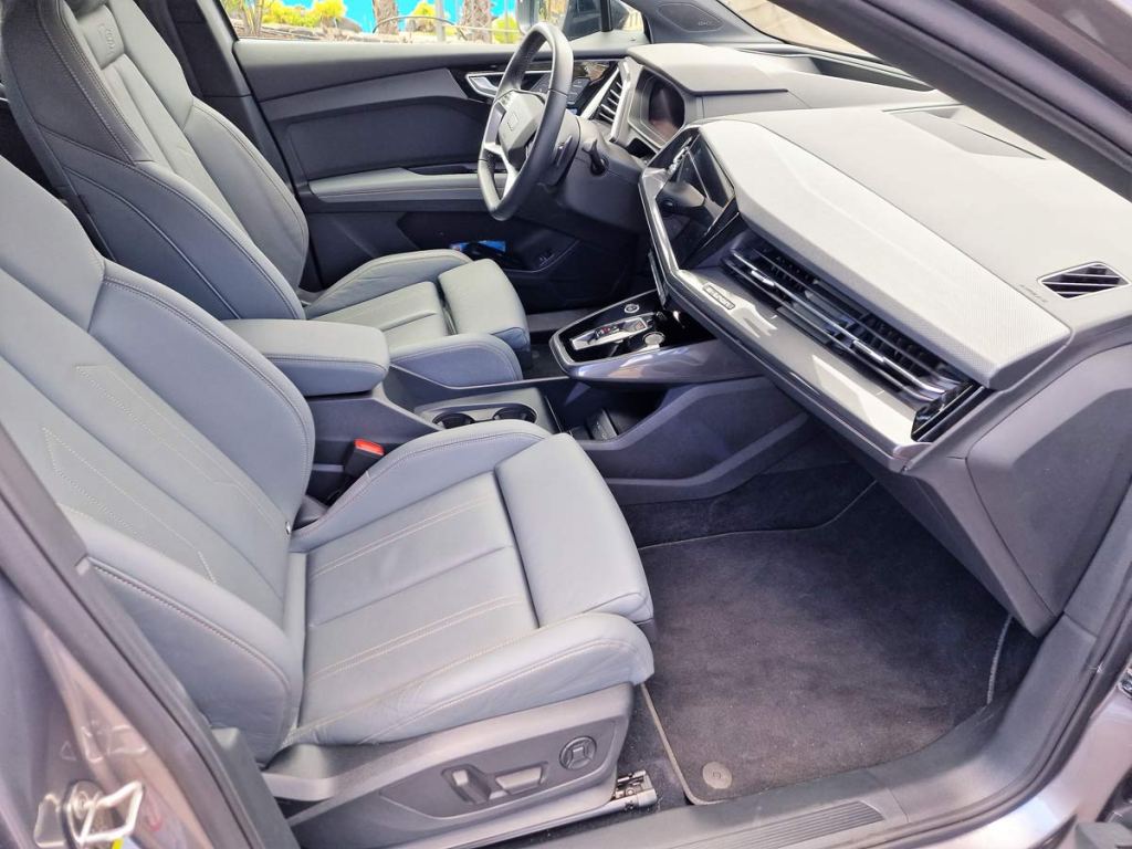 Gracias a su versatilidad, el Q4 Sportback e-tron es un compañero perfecto en cualquier situación. Con 4,59 metros de longitud, ofrecen a los pasajeros un amplio interior, Audi más allá de los límites conocidos en su segmento. La habitabilidad es comparable a la de un SUV de gran tamaño, dado que no hay túnel central. La sensación de amplitud no se limita solo a los asientos delanteros; también en la parte trasera los ocupantes disfrutan de un generoso espacio para las piernas, gracias a las ventajas que aporta la plataforma MEB, diseñada para vehículos eléctricos. En lo que respecta a los huecos portaobjetos del interior, en el Q4 Sportback e-tron destaca por un volumen de almacenamiento total cercano a los 25 litros. En este apartado, los espacios para guardar botellas, integrados en la sección superior de las puertas, son otro aspecto destacable: dan cabida a botellas de hasta 1 litro, que quedan al alcance del usuario.