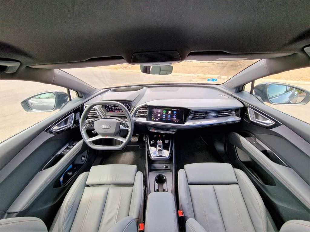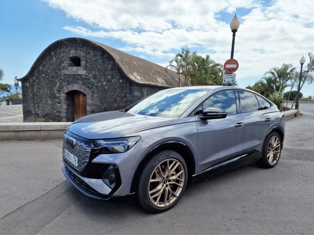 El Audi Q4 Sportback e-tron, que por gentileza de Audi Canarias descubrimos por las carreteras de Tenerife, impresiona por el espacio interior y por la incorporación de soluciones pioneras en el manejo del infotainment y los sistemas de asistencia. El head-up display con realidad aumentada conecta el mundo virtual con el real de una manera totalmente nueva.
