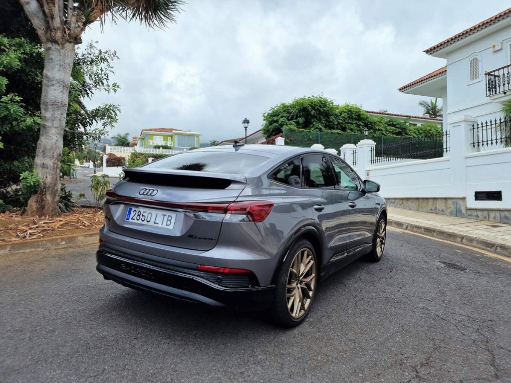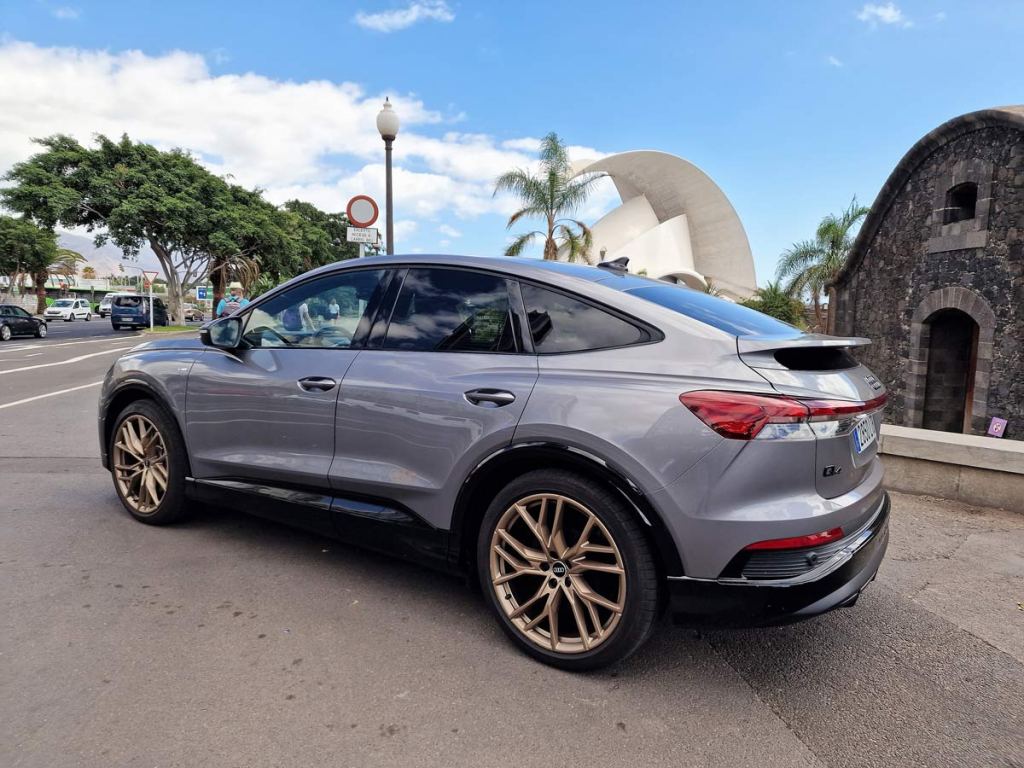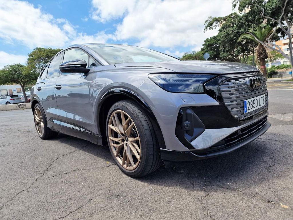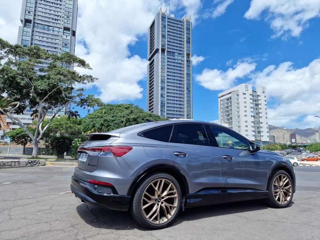 La unidad objeto de nuestra prueba dinámica con una autonomía de 534 Km, un rango de consumo combinado WLTP: 18,2 – 20,0 kWh/100km. Rango de emisiones combinadas de CO2 WLTP: 0 g/km (NEDC: 0 g/km), el Q4 Sportback e-tron 40 S line 204 CV, de color Gris Tifón Metalizado, equipado con unas llantas Audi Sport 21” Edition One Bronce.