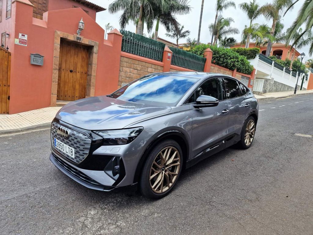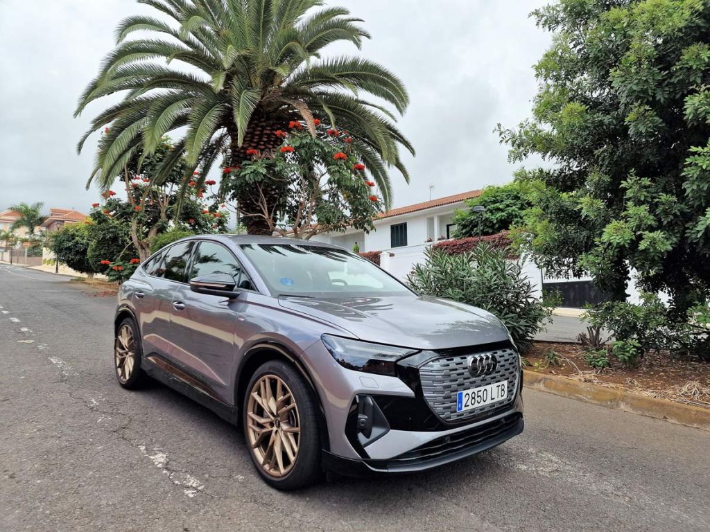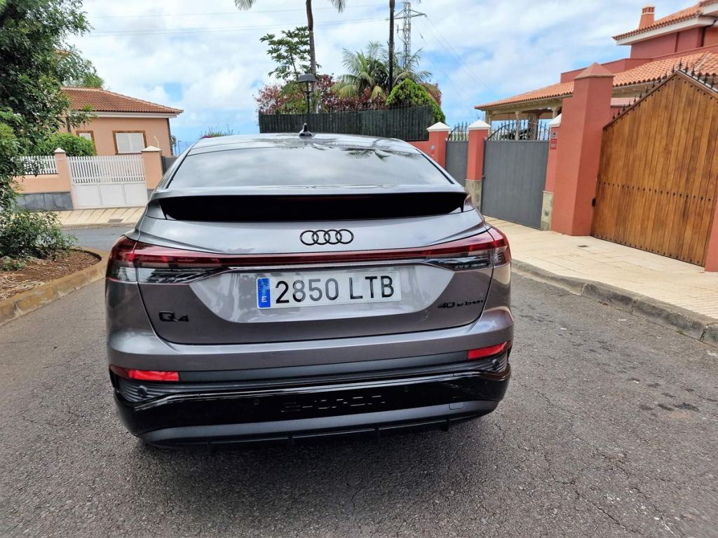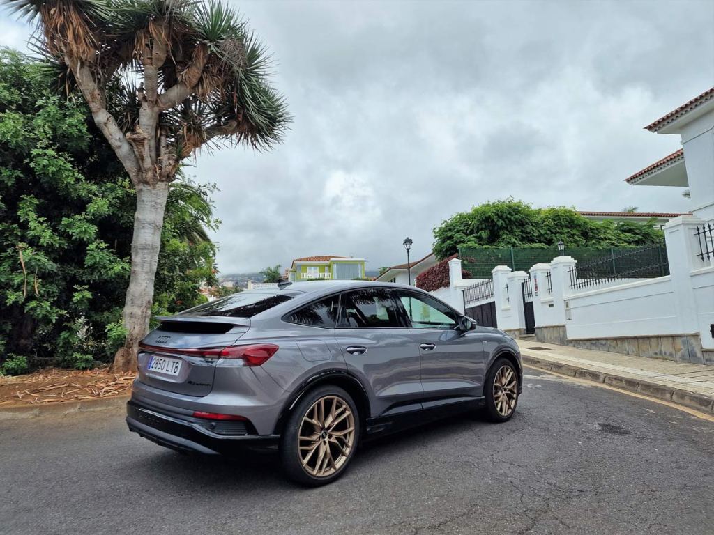 La unidad objeto de nuestra prueba dinámica con una autonomía de 534 Km, un rango de consumo combinado WLTP: 18,2 – 20,0 kWh/100km. Rango de emisiones combinadas de CO2 WLTP: 0 g/km (NEDC: 0 g/km), el Q4 Sportback e-tron 40 S line 204 CV, de color Gris Tifón Metalizado, equipado con unas llantas Audi Sport 21” Edition One Bronce.