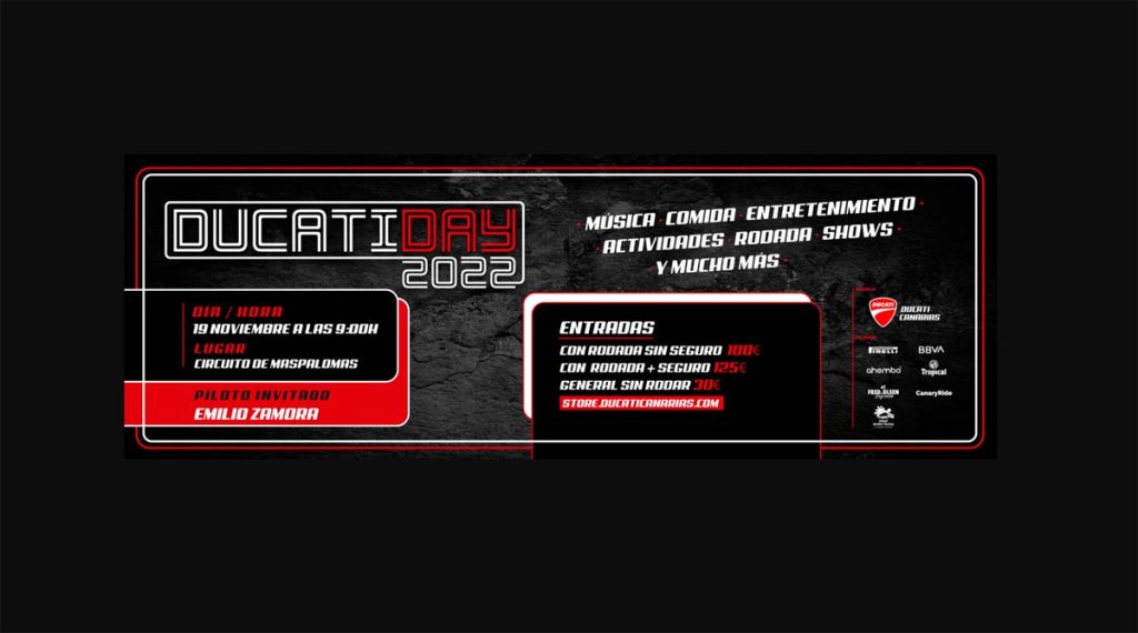 El Ducati Day regresa y lo hace por todo lo alto, no podía ser de otra forma, y es que vuelve con un piloto invitado muy especial, Emilio Zamora. El experimentado piloto de Ducati no dudará en subirse a lomos de su bestia para participar en la rodada y hacer un show de stunt, para hacer las delicias de todos los asistentes, un show con el que ha recorrido la península llega ahora hasta Gran Canaria para ponerlo en liza en la fiesta de los amantes de las dos ruedas.