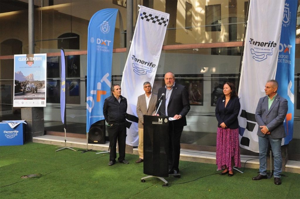 A continuación, haciendo una breve reseña inicial a lo que fue la pasada edición, tomó la palabra el director de la Clásica de Tenerife, Leopoldo Mansito. “Este año hemos querido introducir algunas novedades en la prueba. La principal es que tendremos una etapa adicional en la que recorreremos la isla de La Gomera, con lo que los participantes tendrán la oportunidad de transitar con sus históricos vehículos por dos parques nacionales durante las tres jornadas de competición: el de El Teide, en Tenerife; y el de Garajonay, en la Gomera. Esto ha hecho que más de una treintena de equipos foráneos se hayan animado a participar en nuestra prueba. Entre ellos encontramos algunos que vendrán desde otras islas (Gran Canaria, La Palma, Fuerteventura y Lanzarote), la península e incluso cinco extranjeros, lo que nos da una idea de la relevancia que ha ido tomando la Clásica, así como del atractivo que tiene nuestra geografía para realizar eventos de este tipo. Pero todo esto conlleva un esfuerzo organizativo y logístico mayor, que no sería posible sin el soporte de, entre otros colaboradores y patrocinadores, Tenerife Circuito del Motor, los cabildos de Tenerife y La Gomera, así como de Canaauto BMW, a los que debemos agradecer su inestimable apoyo”, dijo.