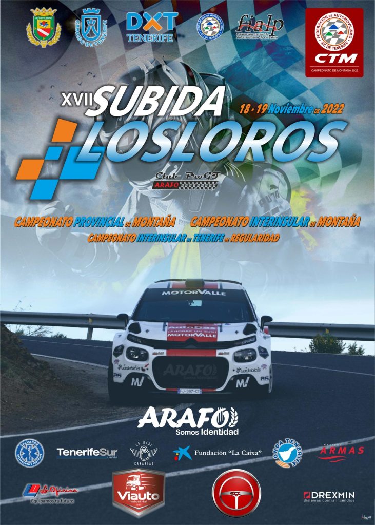 La XVI Subida Los Loros cuenta con el apoyo del Cabildo de Tenerife, el Iltre. Ayundamiento de Arafo, Ireauto, Viauto, Drexmin, La Oficina, Obra Social “la Caixa”, Naviera Armas, TenerifeSur Ahora y Onda Tenerife.