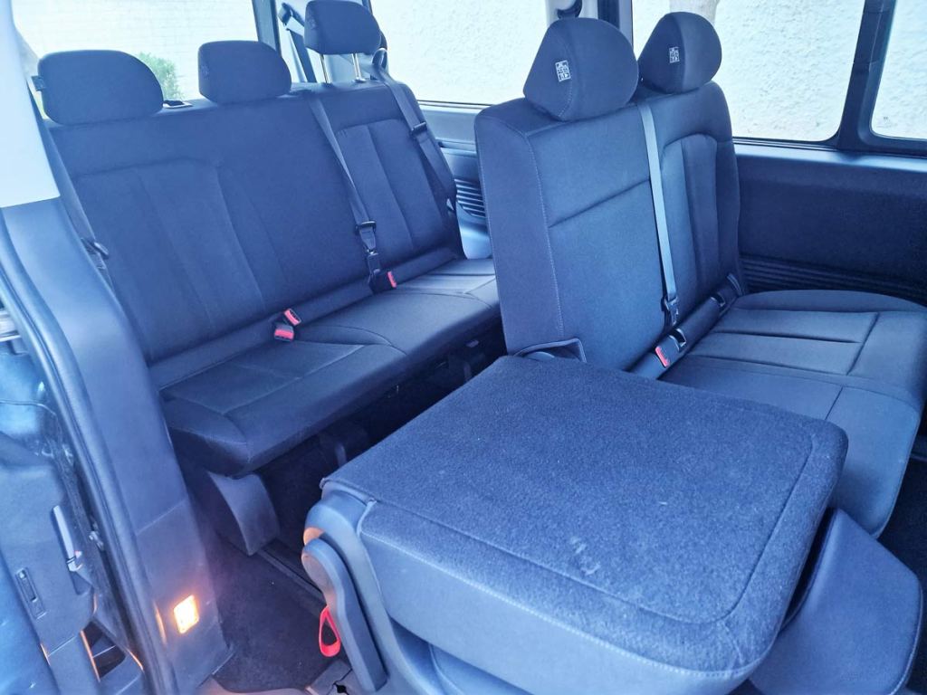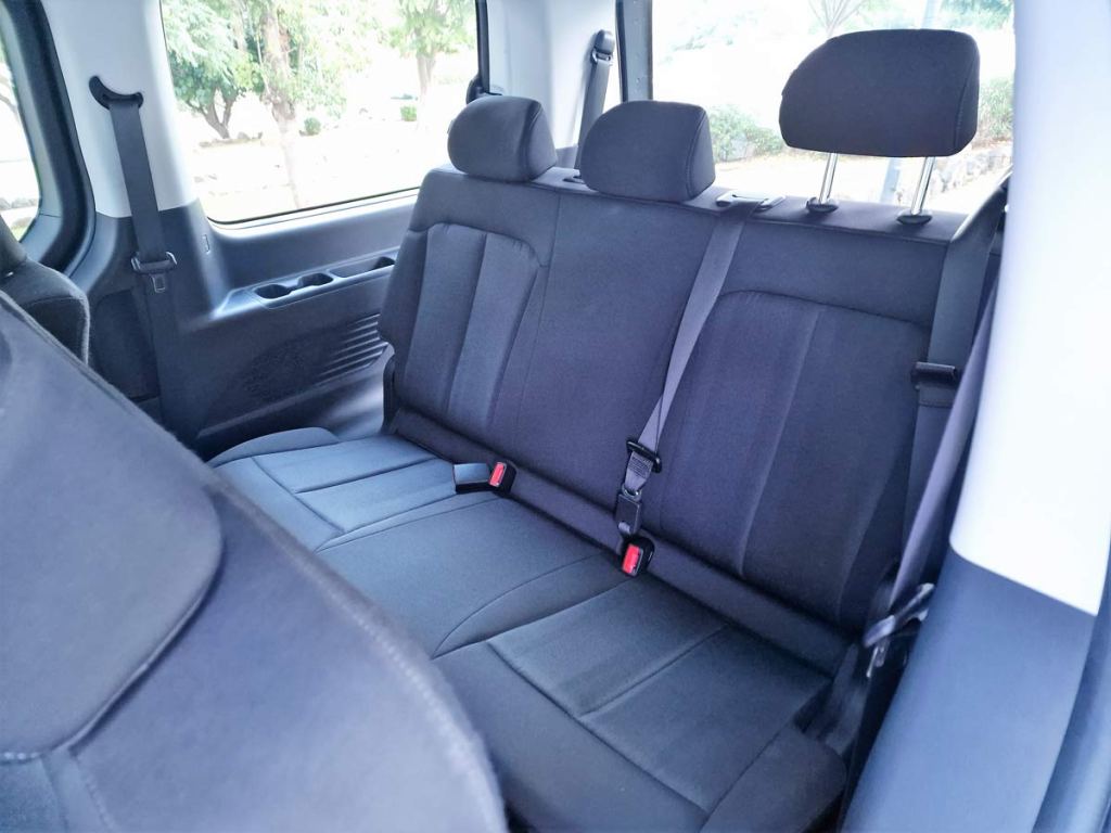 El diseño se traslada a la parte trasera, con una amplia ventanilla enmarcada por faros traseros verticales alargados. El parachoques trasero está rebajado para que los pasajeros puedan cargar y descargar fácilmente.