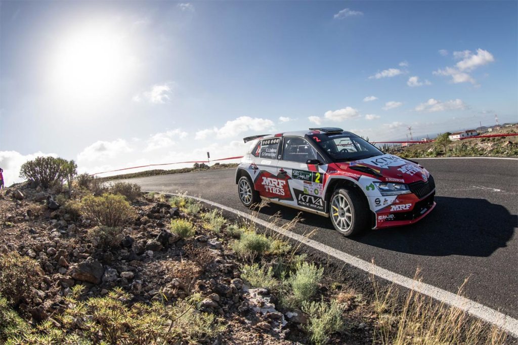 La tónica de la primera sección ha seguido imponiéndose en la segunda; de manera que, la lucha por la cabeza de carrera ha sido prácticamente a la décima. En el TC 5, “Guía de Isora”, Enrique Cruz-Yeray Mujica (Ford Fiesta R5 MK II) comenzaron recortando 2,3 segundos a Efrén Llarena-Sara Fernández (Skoda Fabia Rally2 Evo), que eran terceros en la cronometrada, seis décimas por detrás de Alejandro Cachón-Alejandro López (Citroën C3 R5). Los de Citroën se anotaban el siguiente tramo (“Tamaimo”), tan sólo tres décimas por delante de los de Skoda y cuatro sobre Cruz y Mujica. En la última cronometrada, “Santiago del Teide”, también se registraron diferencias mínimas entre estos tres equipos: Cruz y Mujica delante, Llarena-Fernández a tres décimas y Cachón-López a seis.