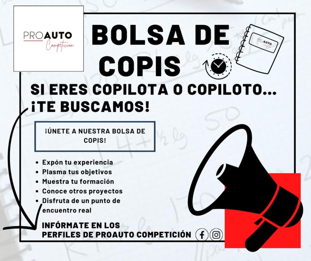 La Bolsa de Copis se constituirá cómo la primera relación de copilotos y copilotas que buscan proyectos deportivos y una herramienta real para aquellos pilotos y pilotas que busquen un perfil adecuado de copilotaje para su proyecto.